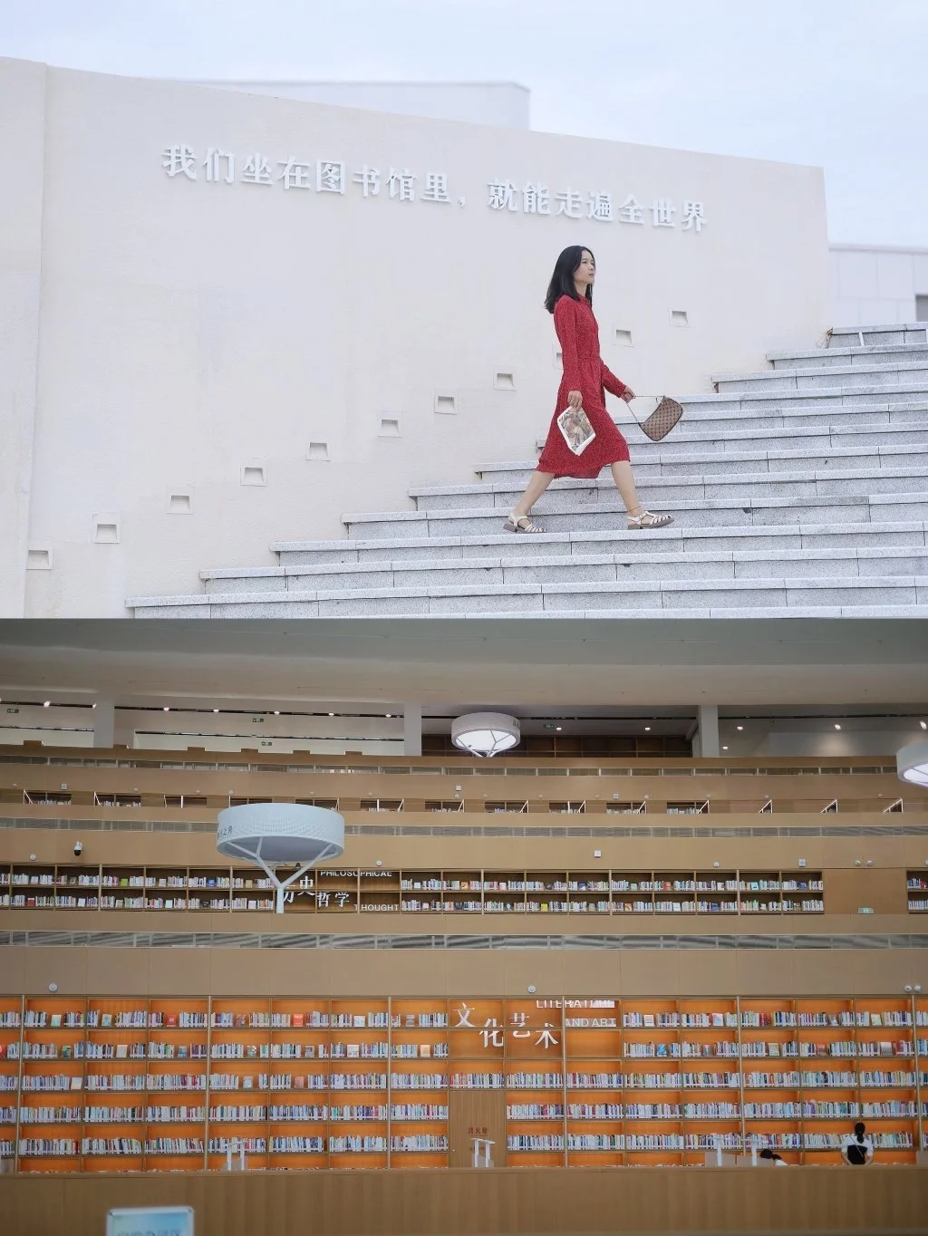 ✔️整个就一个震撼,充满设计感的旋转楼梯,排列整齐的书架,真的太绝了,拍照和看书的绝佳位置