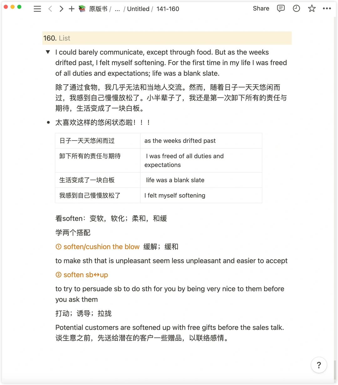 3. 感到自己慢慢放松了 feel myself softening
