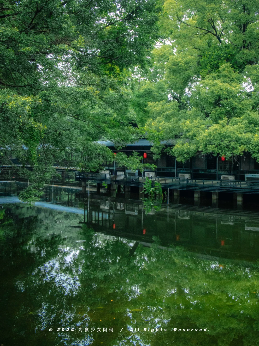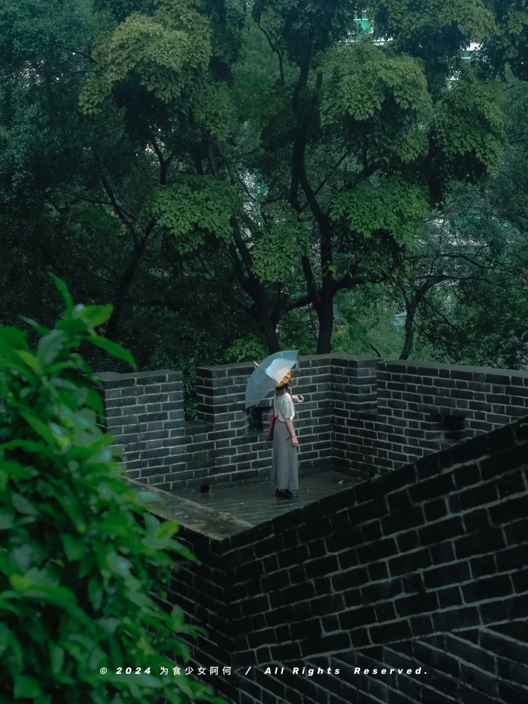 烟雨迷朦的转角和湖中小岛、绿树围绕的古城墙都透露出静谧的美