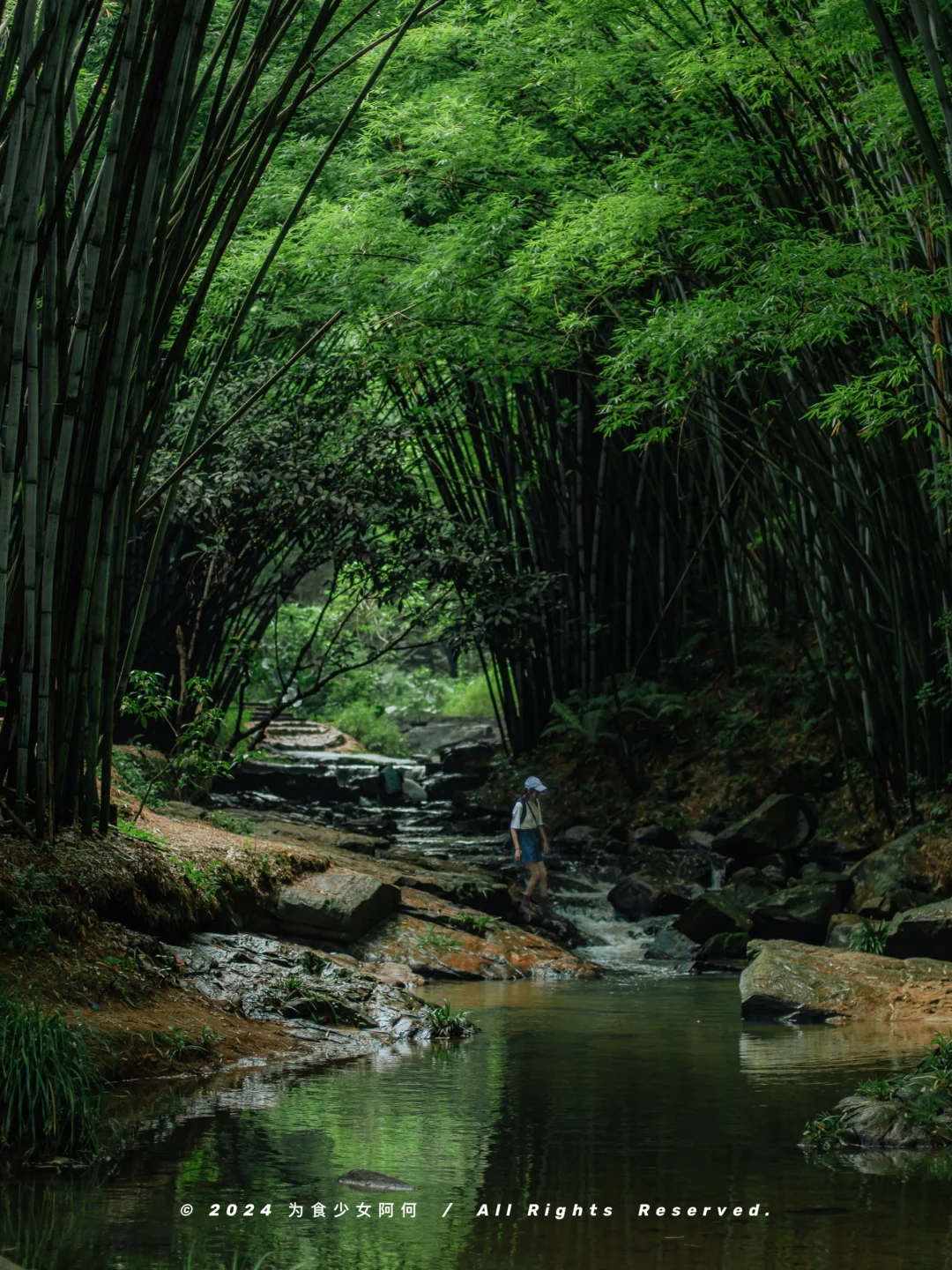 被翠竹绿树环抱的溯溪地,下点小雨更有感觉