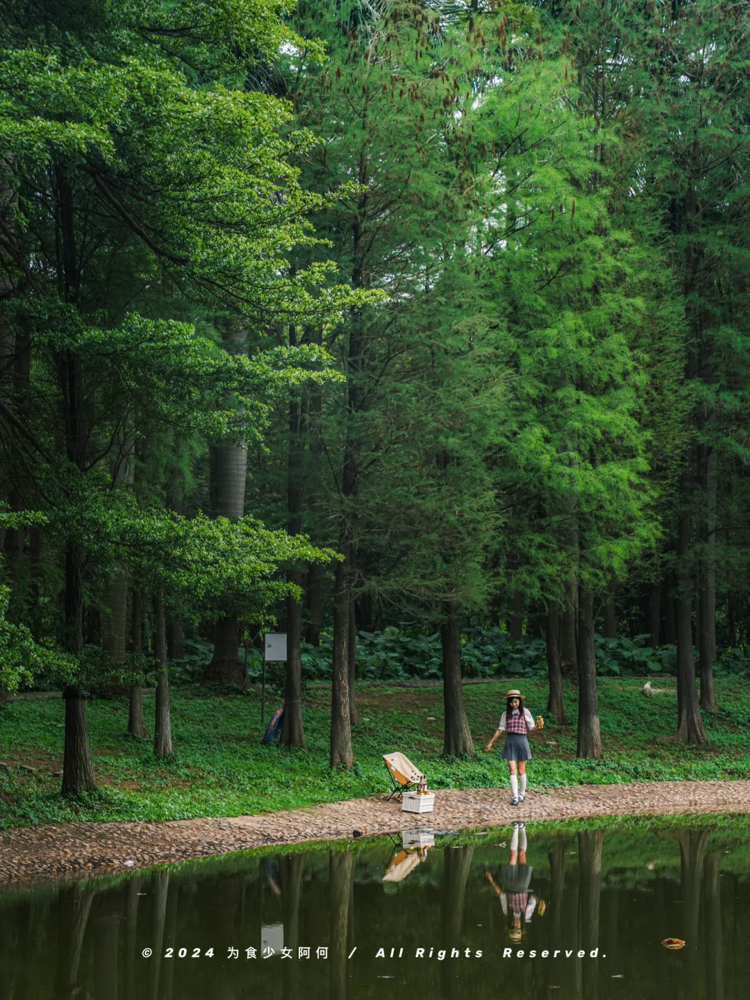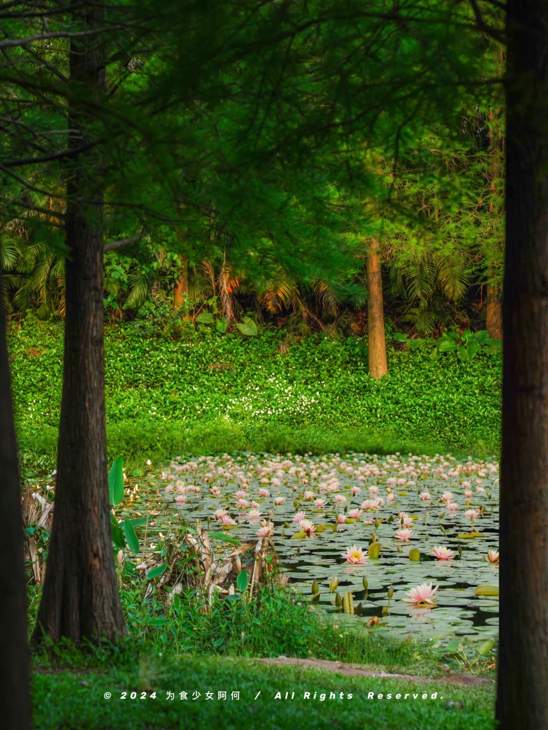 被落羽杉森林包围的栈道,仿佛置身现实版绿野仙踪,森林深处还有一池睡莲🪷
