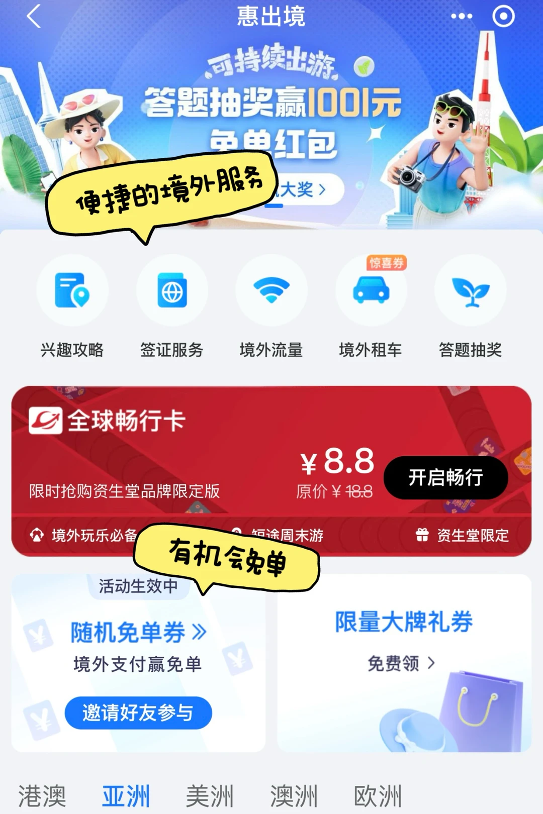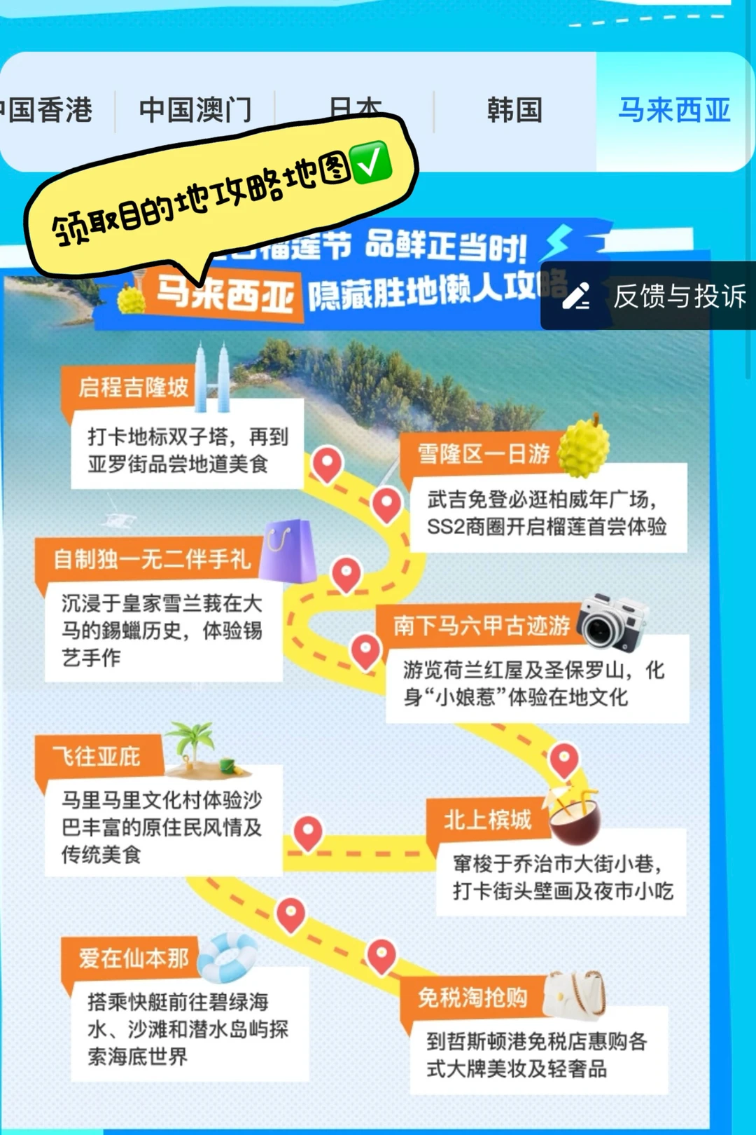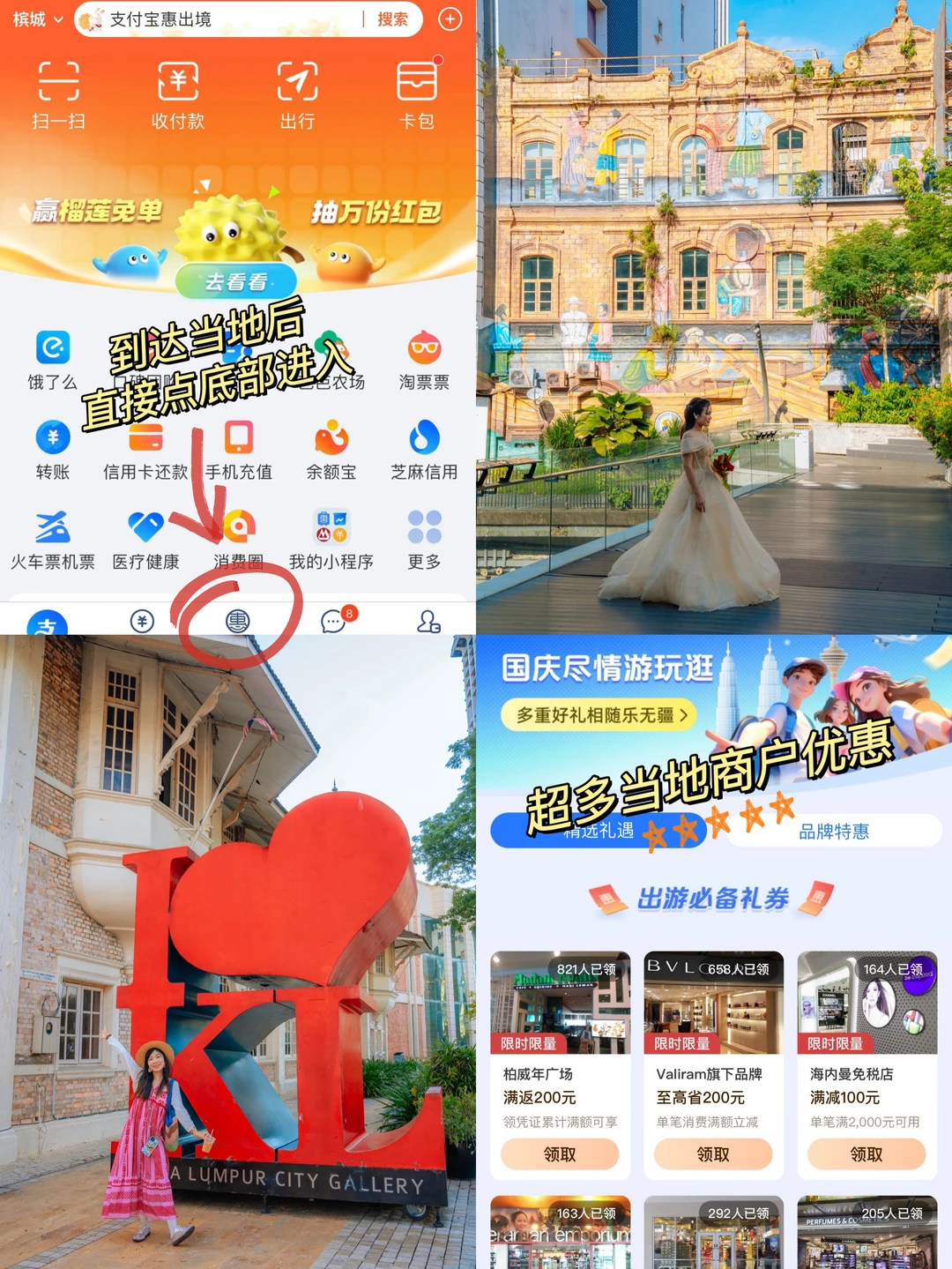 ✅出发前在支付宝🔍惠出境-兴趣攻略-选目的地马来西亚,不仅可查看当地旅游攻略,还能领超多优惠