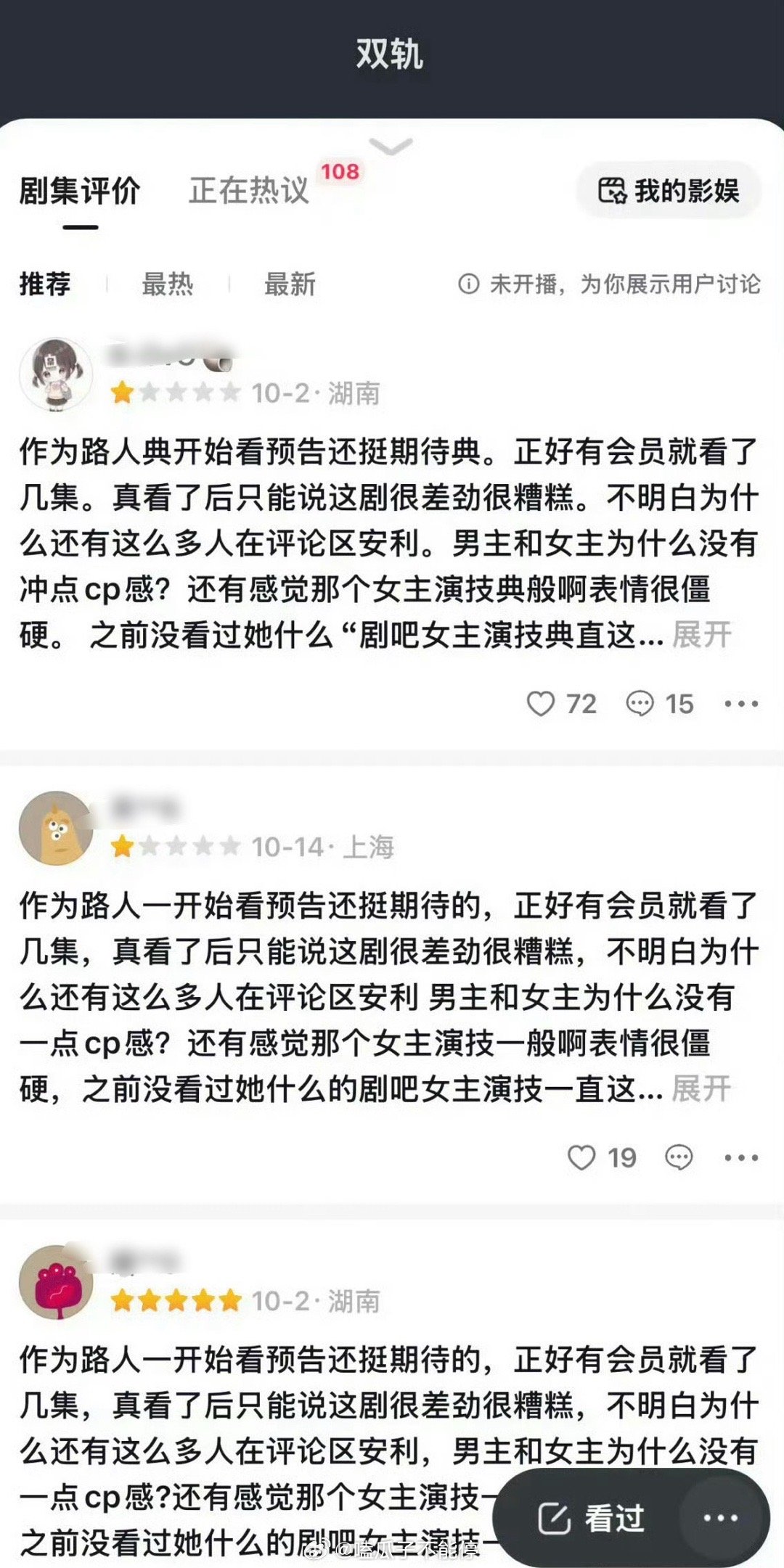 虞书欣、何与的《双轨》还没播出怎么就有一星了