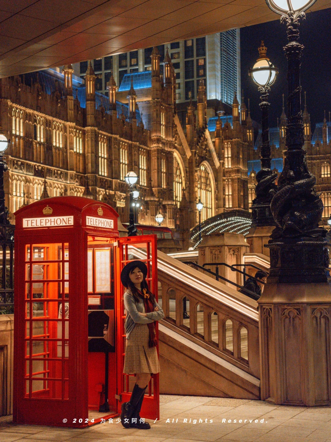 3️⃣连廊下的红色电话亭:秒穿越《哈利波特》