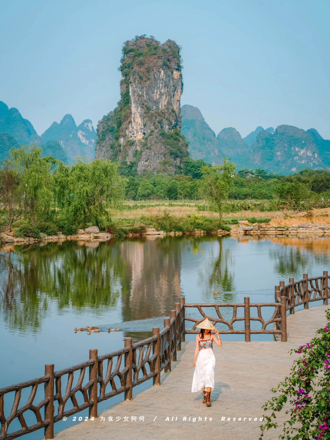 比起逛兴坪古镇,我更爱古镇通往码头的那段路,一边是漓江,一边是连绵的山峦,20r背景地就在这里,免费打卡