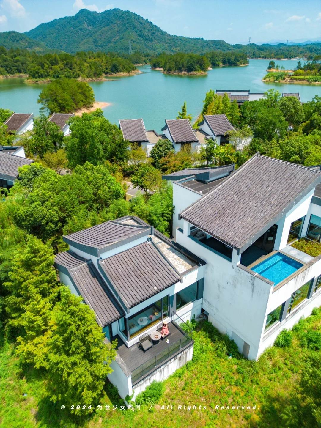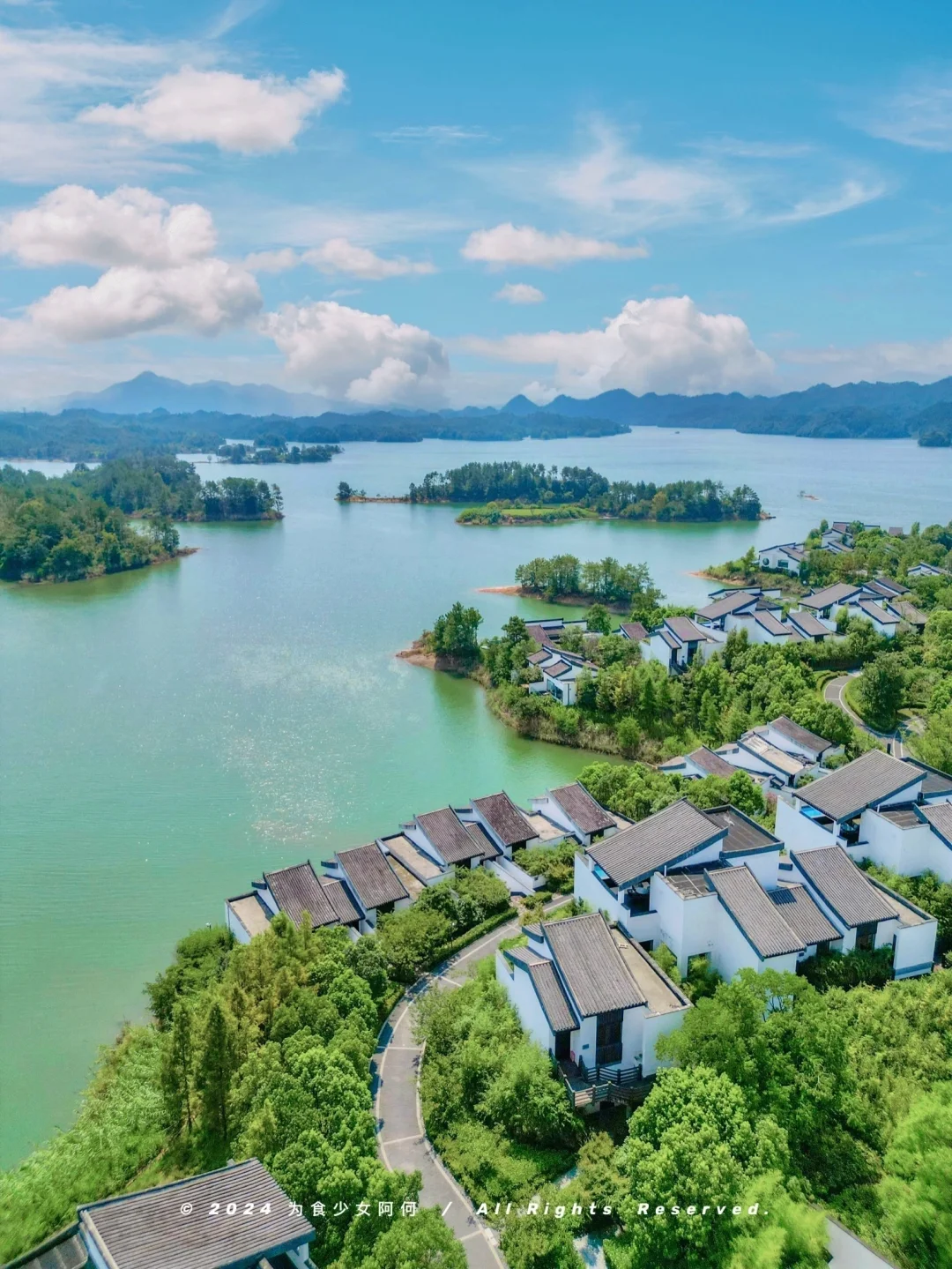 ▫️坐落在千岛湖西南湖区的安岚酒店,一栋栋白墙黛瓦的明清徽派建筑临湖而立,与星罗棋布的岛屿相互印衬,仿佛水墨画般。躺在房间里,千岛湖的湖泊、群山、森林就能尽收眼底,度假感油然而生~