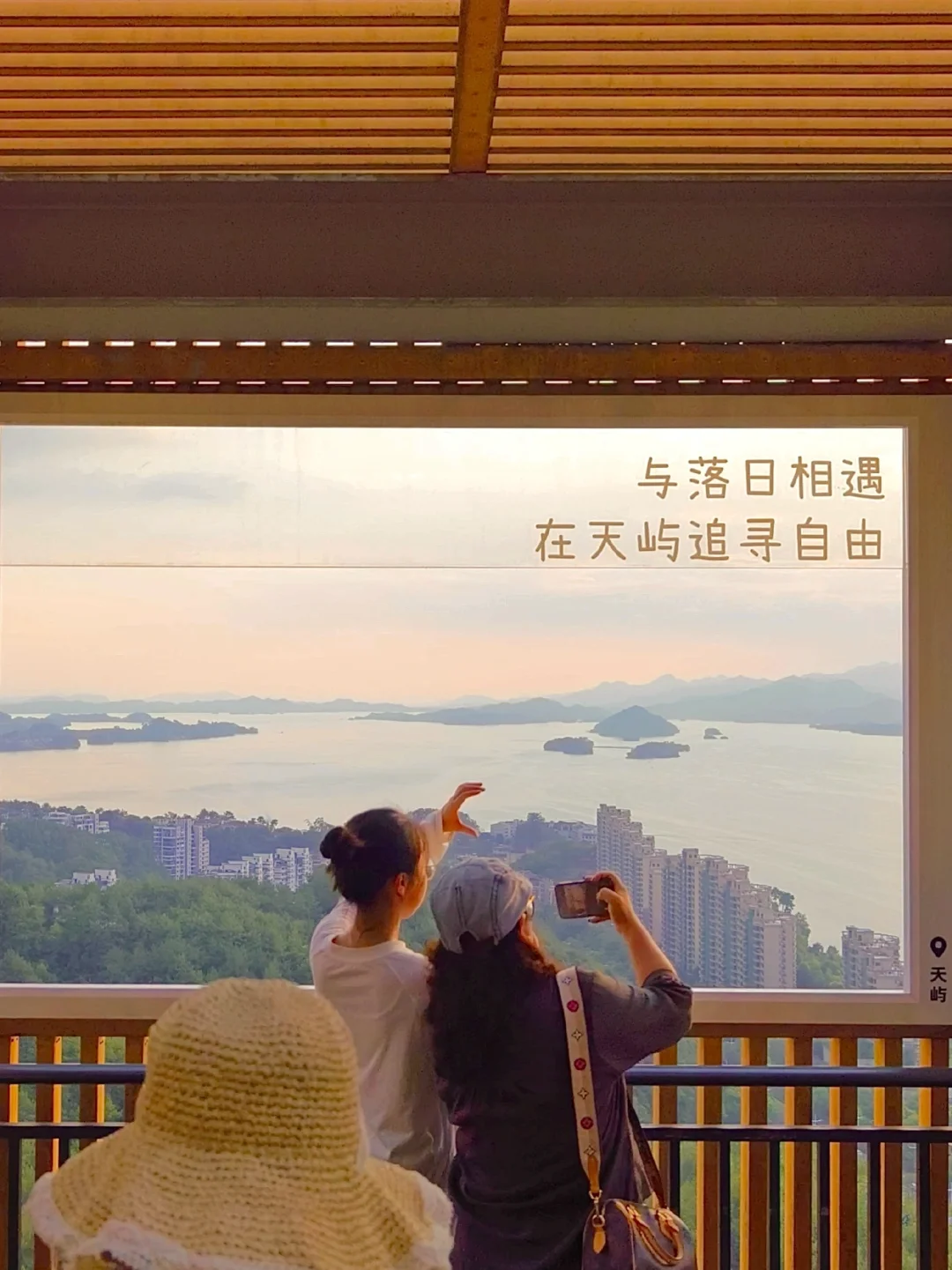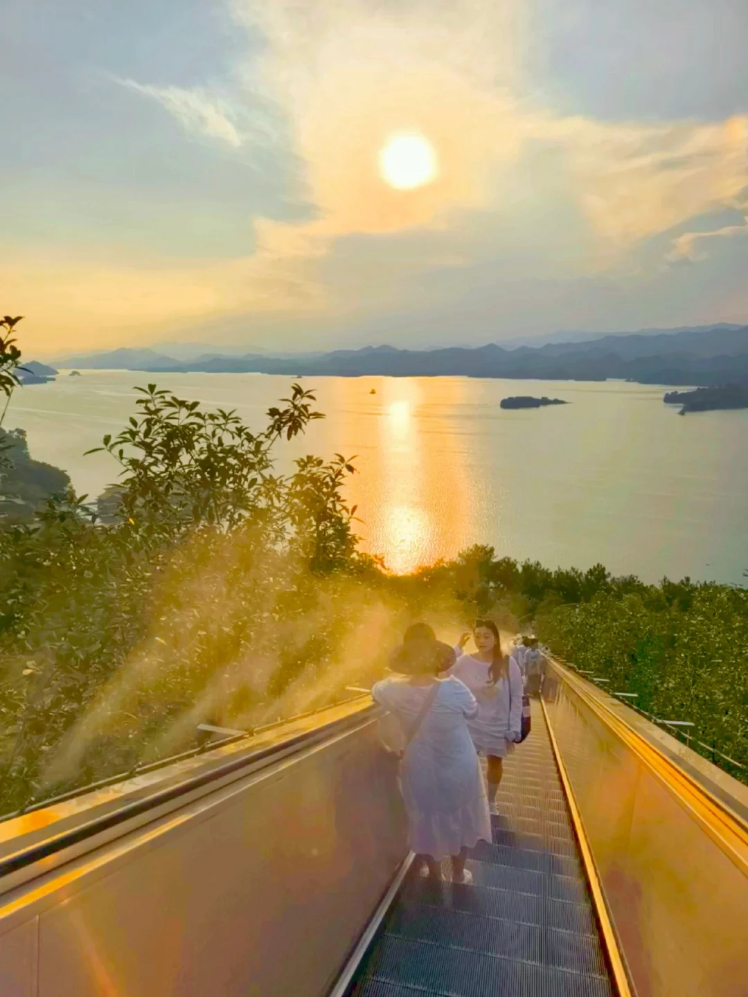 看千岛湖日落和俯瞰千岛湖大桥的绝佳机位!全程扶手电梯上山,超级轻松,真的太超前了~