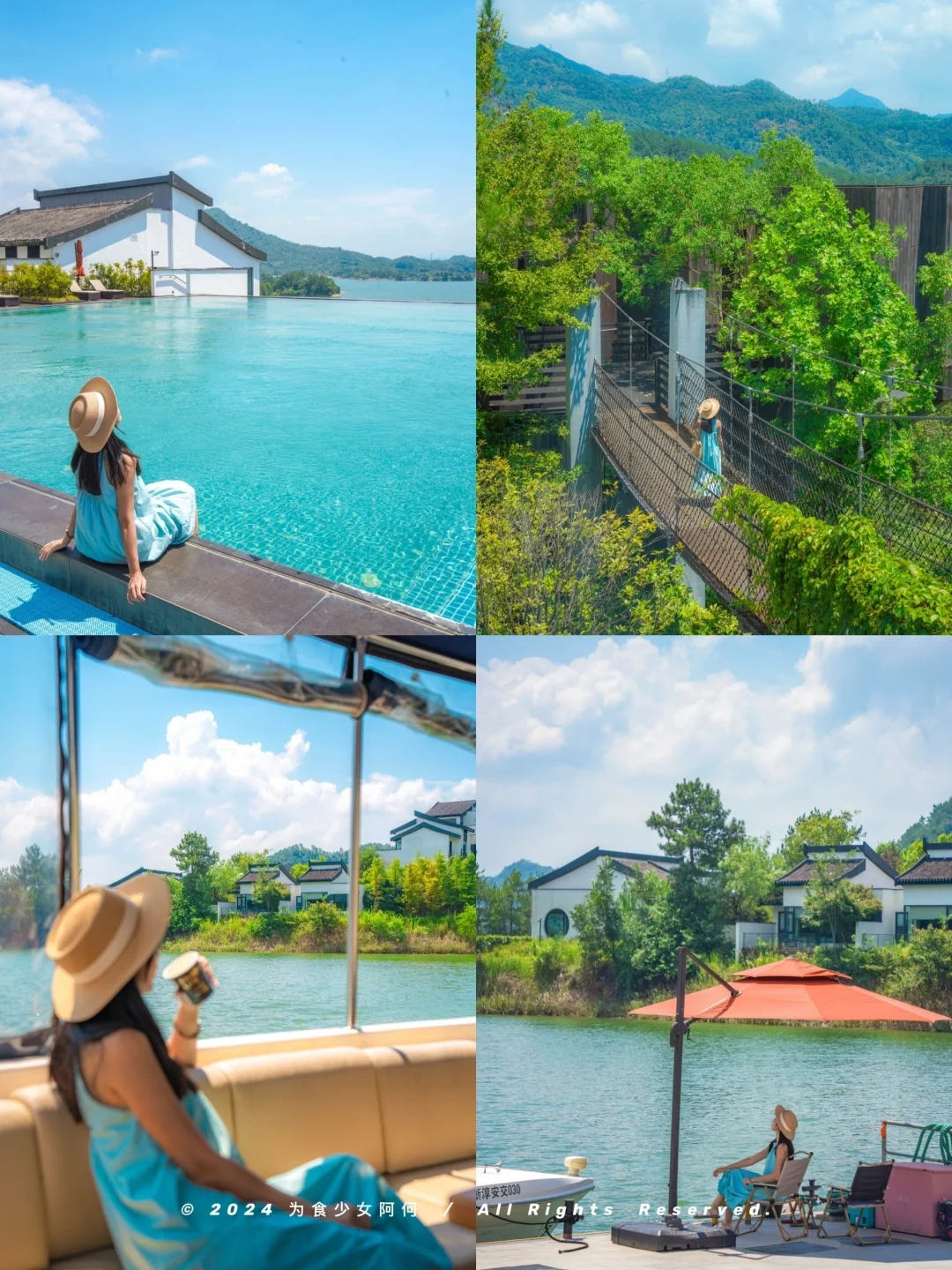 ▫️这里的无边泳池也是出片圣地,需要坐船到达,趣味感💯!这里还能体验桨板、茶寮、SPA等项目,可以说体验很丰富了