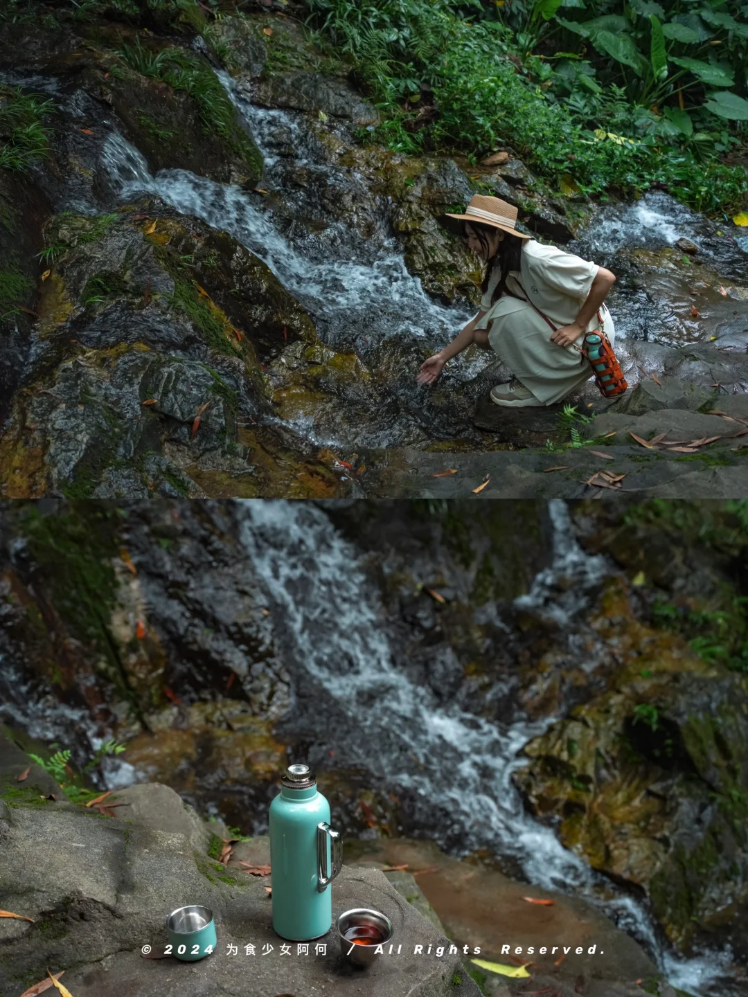 ▪️徒步登山自备一些干粮和水,像我就喜欢自带一壶茶,看着满眼绿意,边听潺潺流水边品茶,真的很惬意~复古造型的传家壶搭配手工牛皮壶衣,背在身上真的气质💯安全耐用的不锈钢材质和温度计表盘,让爱茶人士可以随心享受温度适宜的好茶~搭配轻便有质感的户外钛杯,走到哪喝到哪👍🏻