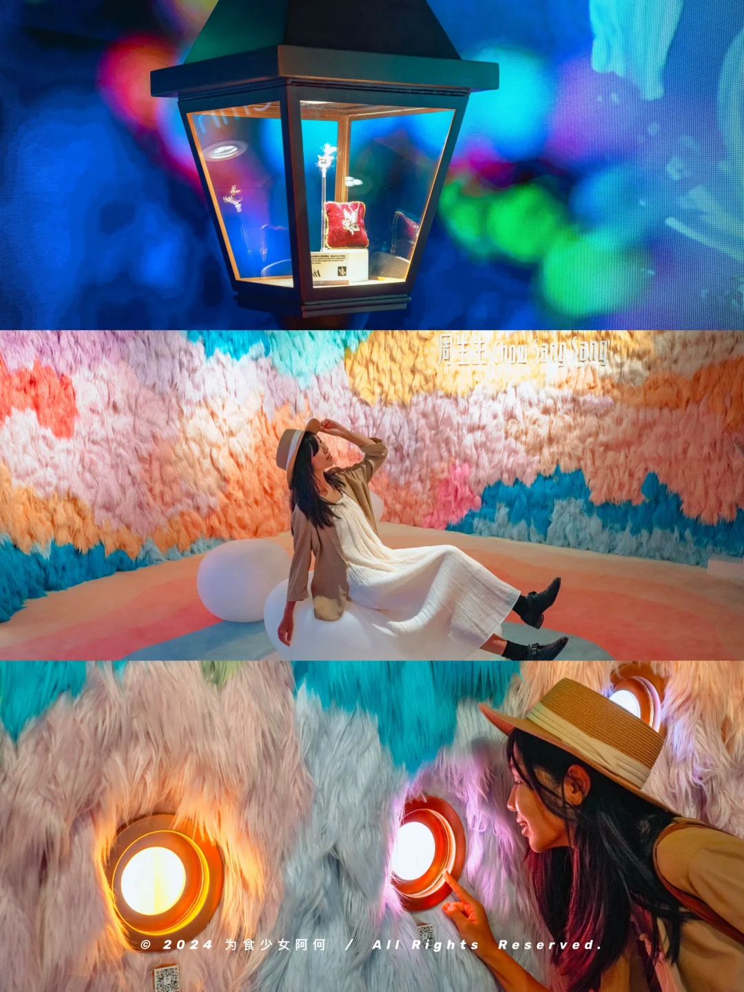 🔸入口打造成年代感升降机,摩登复古,拍照很有电影感;还有以酒吧作主题的「情爱共生」区,以梦幻毛绒装饰的「梦想共生」区,每个场景都很有意思,犹如一个沉浸式剧场