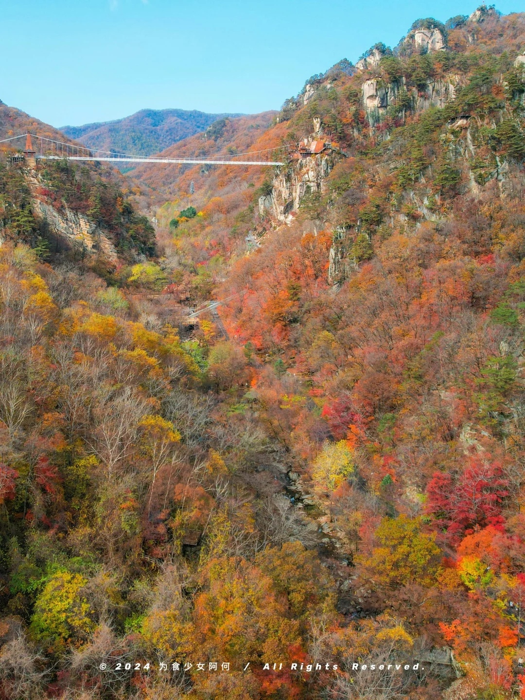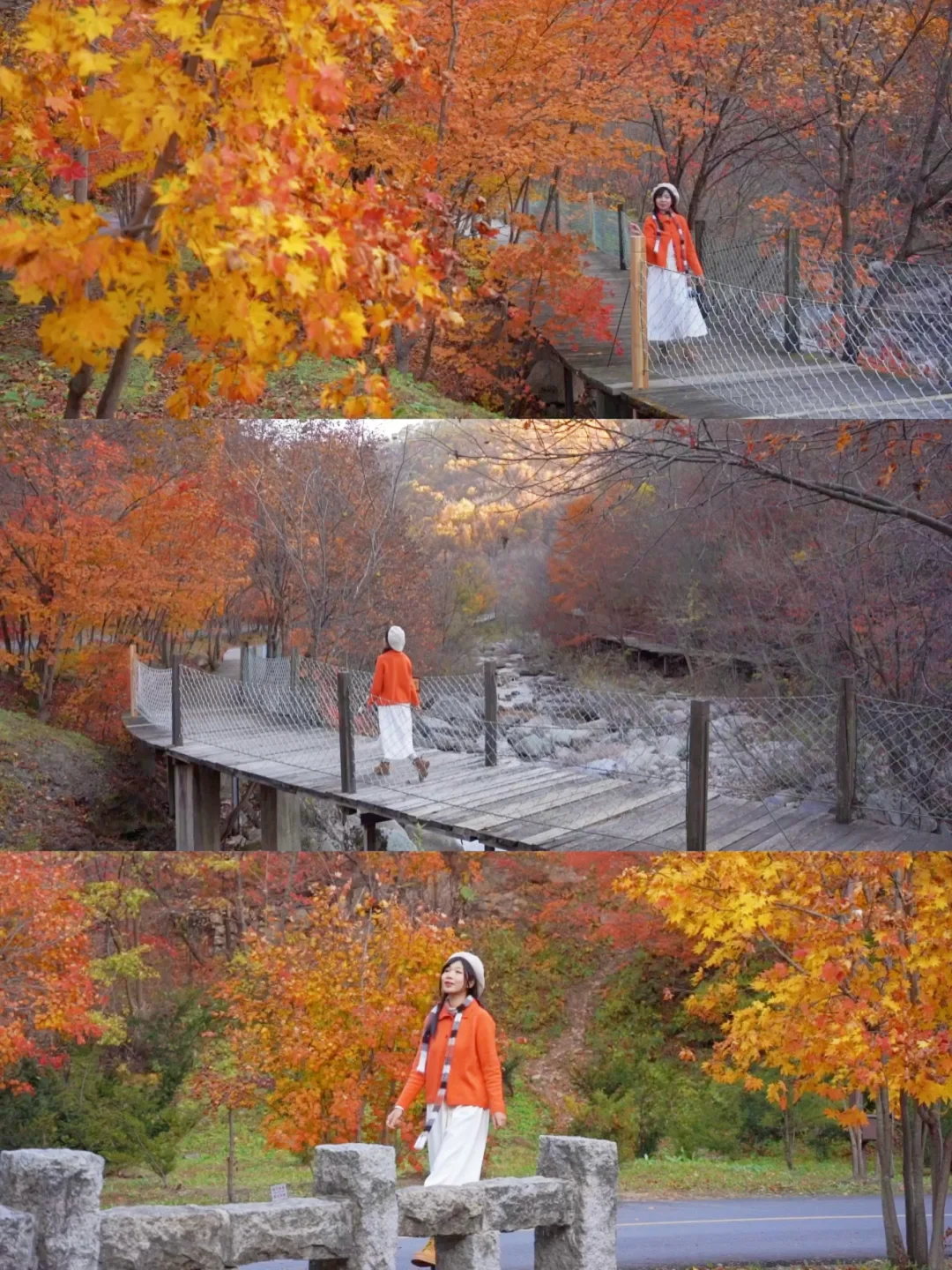 如果赶不上本溪枫叶的尾巴 就来丹东吧,现在才是枫叶刚正红正亮的时候 这里还是“中国枫叶最红最亮的地方” 一点也不输本溪!溪流、栈道、石桥、 枫林公路、湖景、玻璃桥…通通都有 而且人特别少 沿着溪边一直漫步,眼前红黄绿三色交织 五彩斑斓的秋天此刻具象化了 沿路还可以捡各种橡果、栗子 南方来的城市孩子特别快乐~ - 📍丹东天桥沟景区 🍁10.15实拍,目测到下旬都会很美哦~ 🏨住宿可以选择景区旁的枫墅小区,特别美 🚗周边还可以去爬虎山长城,眺望🇰🇵 🍎景区门口有一片果园,可以体验摘苹果的乐趣 -