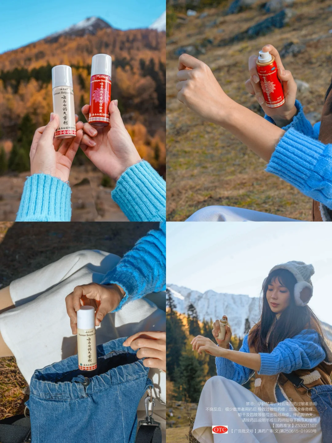 ✔比如云南白药气雾剂,户外旅游我都会包中常备,不小心扭伤拉伤可以用得上。小小两瓶很方便携带,遇到闭合性损伤,先喷红瓶冷敷,3分钟后再喷敷白瓶,等风干自动成膜,形成保护。平时运动徒步前配合热身和运动后配合拉伸也能喷一喷白瓶哦~