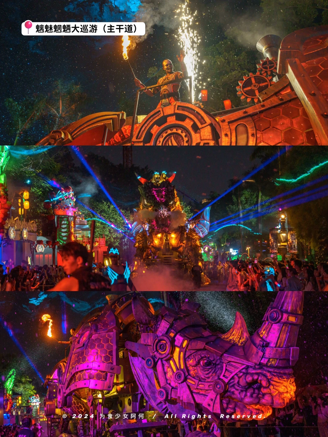 大型花车巡游,有白天场和夜场,晚上氛围感更强,建议提前10分钟在主干道等待