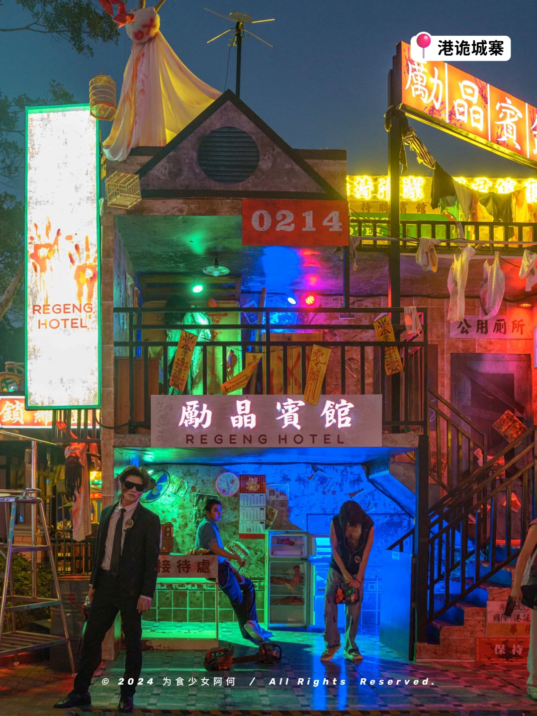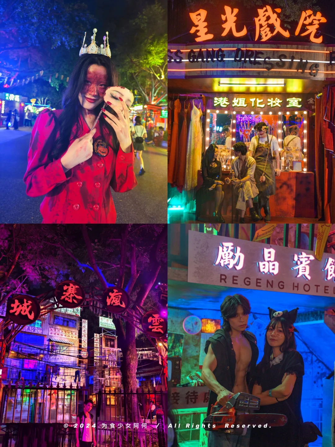 仿佛进入九龙城寨,全新的港风鬼屋【城寨疯云】必玩!天黑后很有氛围感!还可与NPC互动寻找线索,还原港姐si亡背后的真相