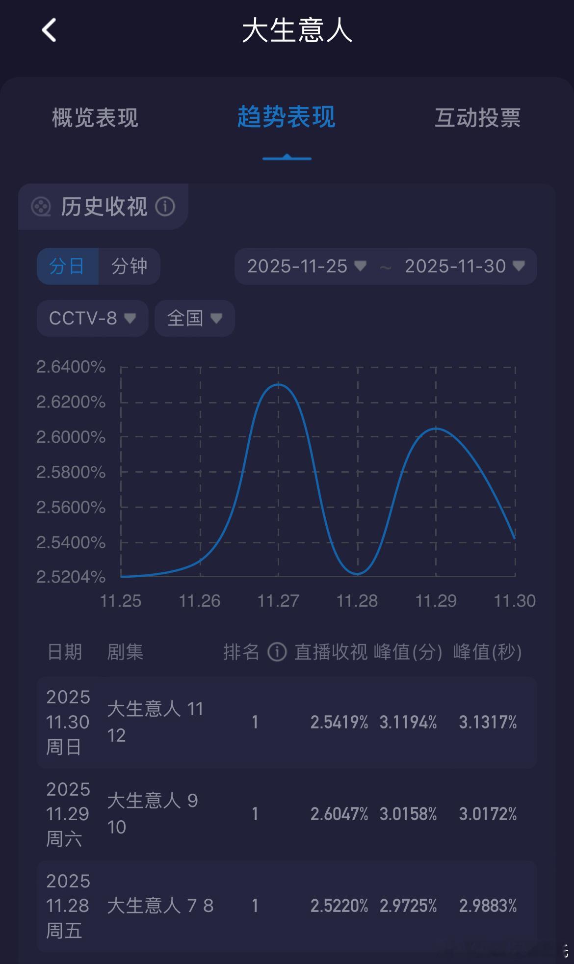 陈晓大生意人 今晚热度8259,较前日涨79播放量明日肯定能突破2000万了酷云收视率依然保持2.5上下浮动招商最新单集3广25s,总时长598s