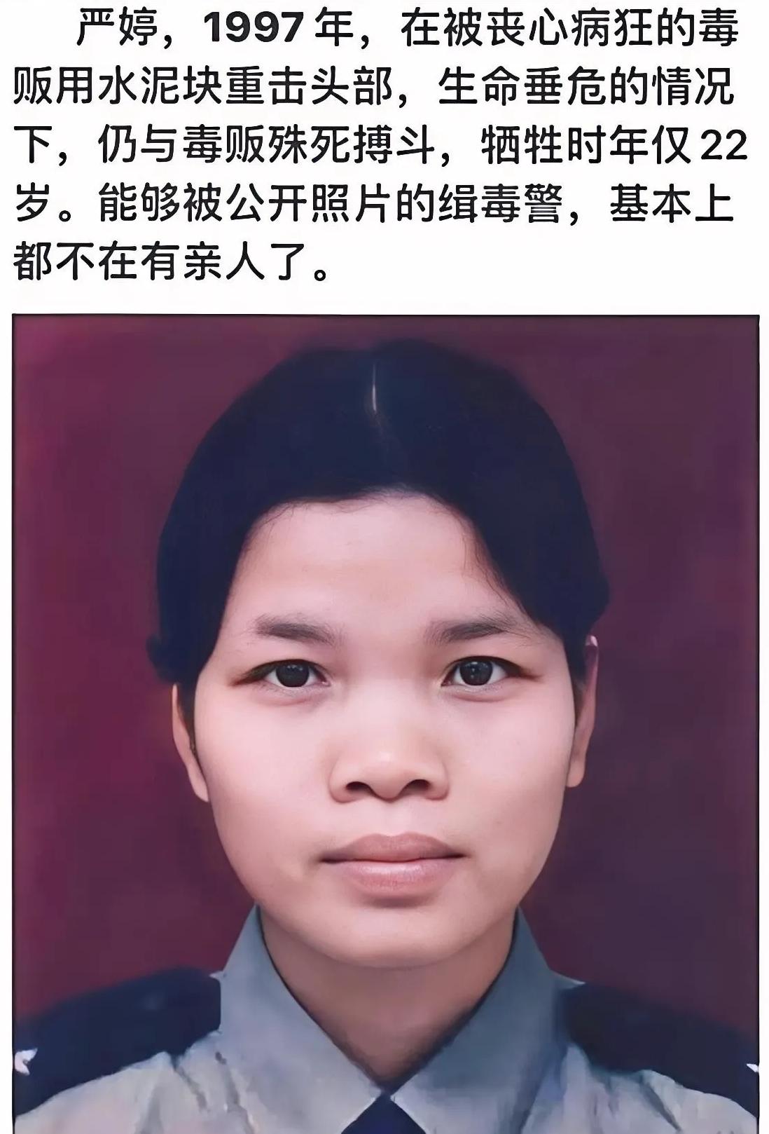 23年后才公开遗照的女警: 三代忠烈无后人,她的牺牲该被永远记住!你见过连墓碑都不能刻名字的烈士吗?22岁的缉毒女警严婷就是这样,1997年牺牲后,她的墓碑没名字、没照片,直到23年后遗照公开,大家才知道——她早已没有三代直系亲属,一家三代都倒在了禁毒战场上。 那天深夜,严婷独自看守刚抓获的毒贩赵勇夫妇。听到金属落地声时,她冲过去发现赵勇正帮妻子解手铐。明知男女力量悬殊,她没退,举枪喝止却被夺走武器,扭打中被赵勇用水泥块猛砸头部。哪怕血流满面、意识模糊,她仍死死抱住赵勇的腿喊人,直到同事赶来,22岁的她却再也没醒。 为啥当年连墓碑信息都要藏?懂的人都知道,缉毒警怕毒贩报复家属,只能用这种方式护家人安全。如今我国每年仍有超300名缉毒警牺牲,最小的才18岁。他们用命挡住的黑暗,换来了我们的安稳。 严婷的警号早已永封,但她的故事不该被遗忘。你身边有没有让你敬佩的英雄故事?来评论区说说吧。