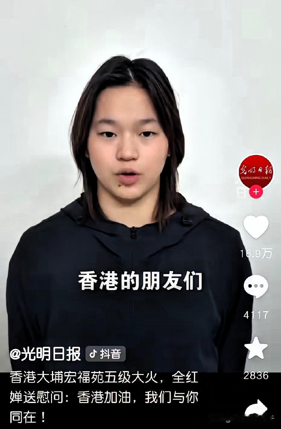 陈芋汐瞧见了,陈若琳教练也留意到了! 香港大埔受灾,全红婵等运动员教练员集体发声,送上暖 心慰问。婵宝在视频里那番话,真诚又温暖,让人感动不已。 说起全红婵,她可不止有跳水天赋,前几天还看到她去新疆滑雪,三天就学会了换刃,连苏翊鸣都夸她有天赋呢! 但更让人佩服的是,婵宝不仅实力强,还特别有爱心,一点明星架子都没有,平易近人得很。 这样的宝藏女孩,真是让人不得不爱!实力、人品、爱心,她全都有,简直就是人生赢家!