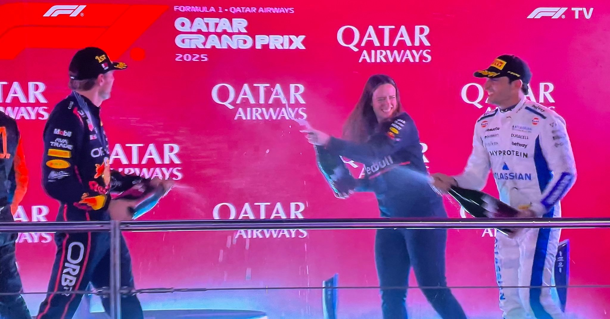 维斯塔潘的争冠路上,红牛策略女王居功至伟。(最后一张是第7圈,当安全车出动时的直播画面)2025f1卡塔尔大奖赛