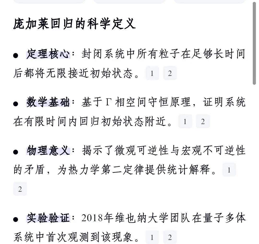 庞加莱回归的确是真实存在的数学定理,其标准表述为:在一个封闭且有限的保守动力系统里,几乎所有初始状态在历经足够长的时间后,都会无限趋近于其初始状态。