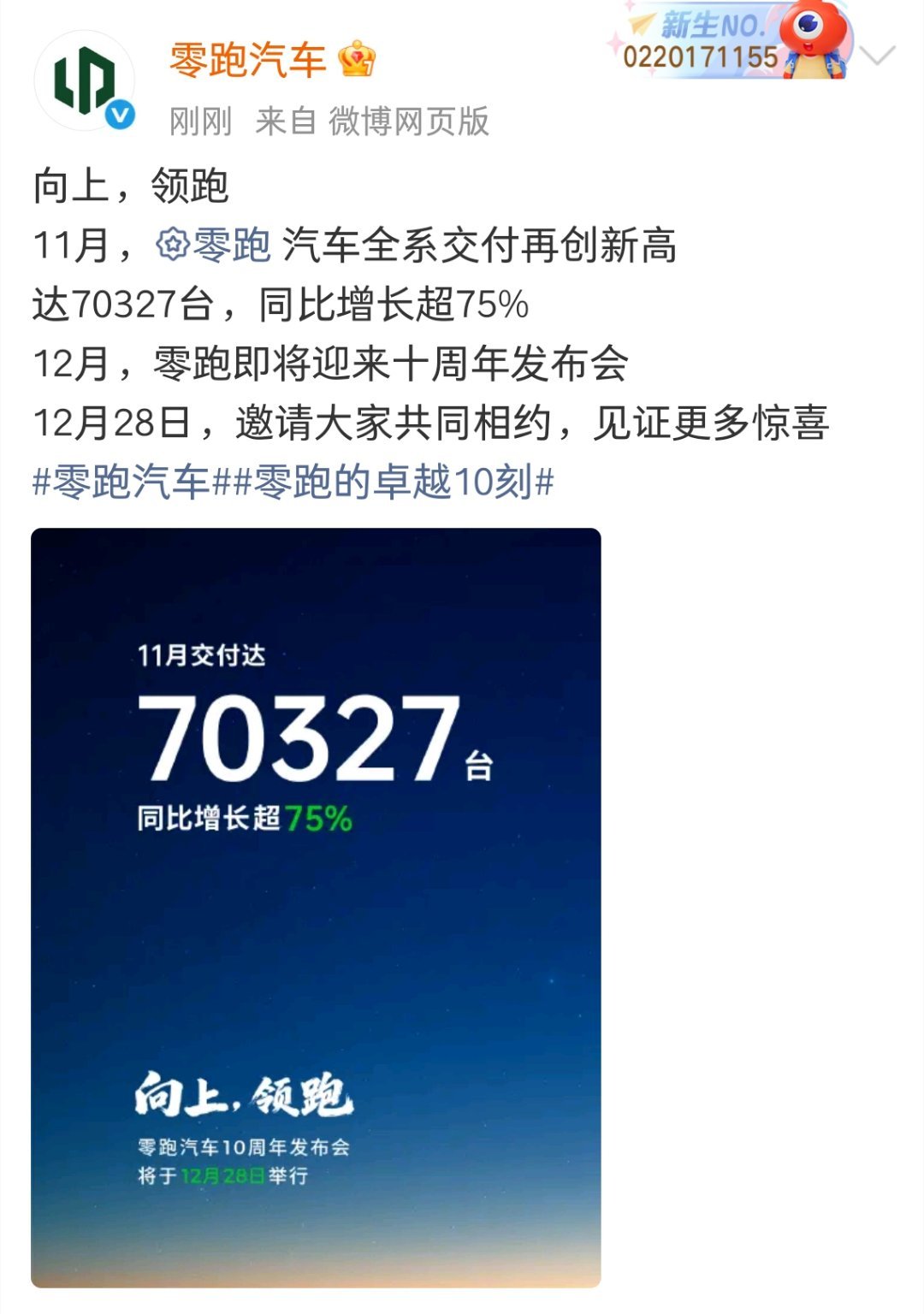 零跑明年的销量目标是100w算下来平均月销8.3w 辆对零跑有信心的可以买股票了