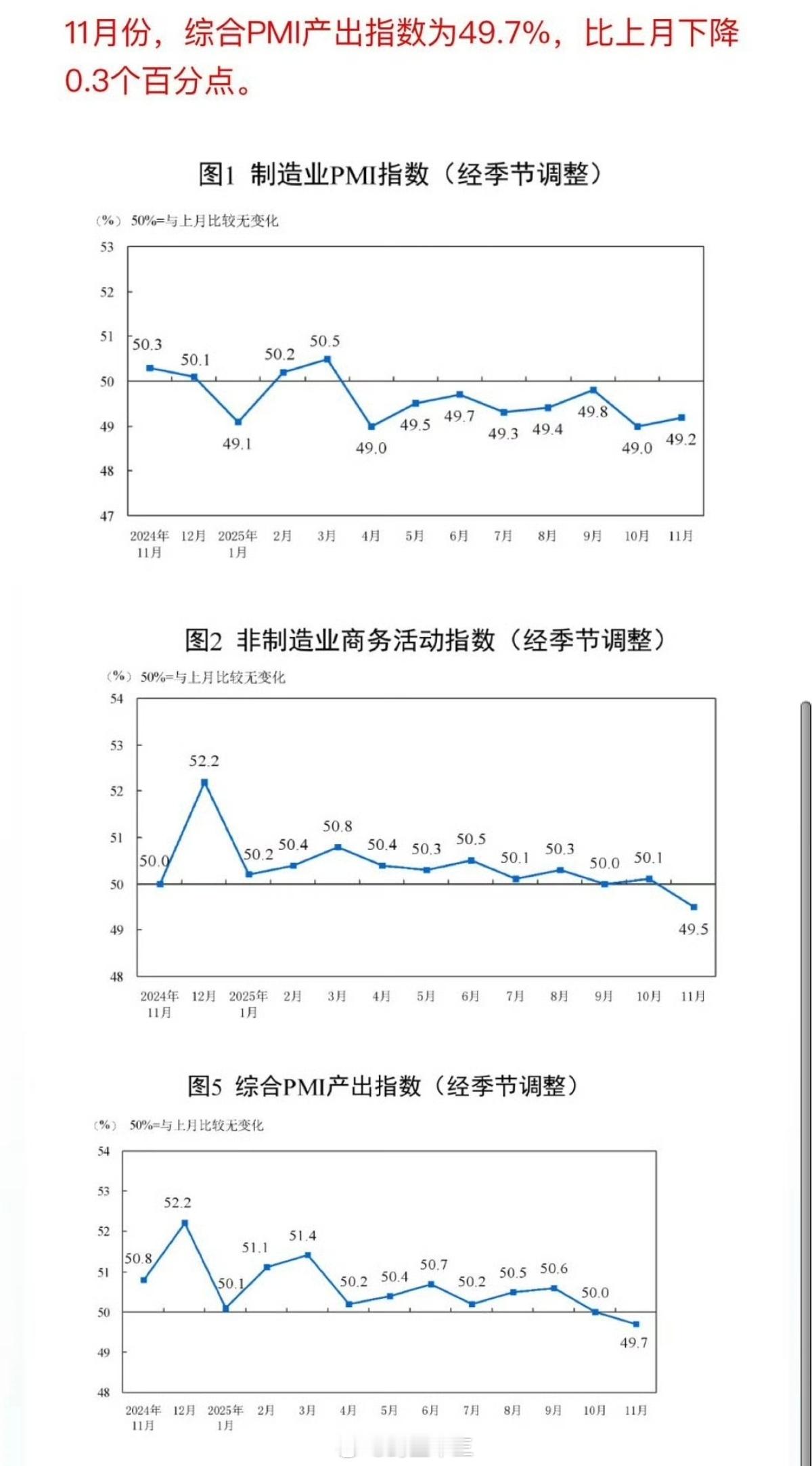 a股A股的底层数据: Pmi好起来了吗?稳住4000点,还需要经济的支撑。周末刚出炉的11月制造业PMI数据,49.2%——比上个月略高了那么一点,但还没跨过50%的枯荣线。你看,数据这东西就像一面镜子,光看表面可能觉得“还在调整”,但往深处扒一扒,全是藏在细节里的好消息 。牛市一定要抓住新主线,最新解读跟踪新主线 3班咱先拆开来聊,这几个信号真得留心:第一,出口这盘棋,悄悄动起来了新出口订单指数从45.9%涨到47.6%,别觉得这涨幅不大,在当下的环境里,这就是逆势而上的。特意去查了背后的门道,核心是半导体、通信设备这些硬核产业链在发力,而且咱们的市场版图也在扩容——东盟、非洲、拉美这些地方,成了外贸增长的新引擎。你看,机会从来不是等出来的,是产业升级和渠道深耕“长”出来的 。第二,小企业的精气神回来了11月大型企业PMI微降0.6个百分点,中型企业小升0.2个百分点,而小企业直接暴涨2.0个百分点,冲到49.1%。这背后不是运气,一方面是出口回暖带了订单,另一方面是准财政工具给民营企业的支持实打实落地了——不低于20%的支持比例,让小企业有了周转的底气、扩张的勇气。记住,经济的活力从来不止看大企业,小企业的复苏才是最实在的“春江水暖” 。第三,行业分化里藏着未来方向。科技行业的景气度一直站在高位,这不用多说,硬科技就是穿越周期的底气;建筑业悄悄往上走,说明基础设施的发力在慢慢显效;而服务业暂时有些回落。这其实在告诉我们,每个赛道的节奏不同,但机会永远在那些有硬实力、能扛周期的领域里 。最后总结下:实体经济不是在“喊口号式变好”,是在实打实往上走。科技是当下最稳的增长极,建筑业跟着补位,消费确实还在调整期,这是客观事实。但最让人欣慰的是,出口的好转带活了一批小企业,政策的支持给了民营企业信心——所有来自未来的好消息,都是今天这些具体的努力攒出来的 。