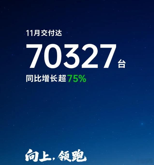 11月,零跑全系交付再创新高达70327台,同比增长超75%,这个数据99%继续领跑造车新势力榜单零跑汽车