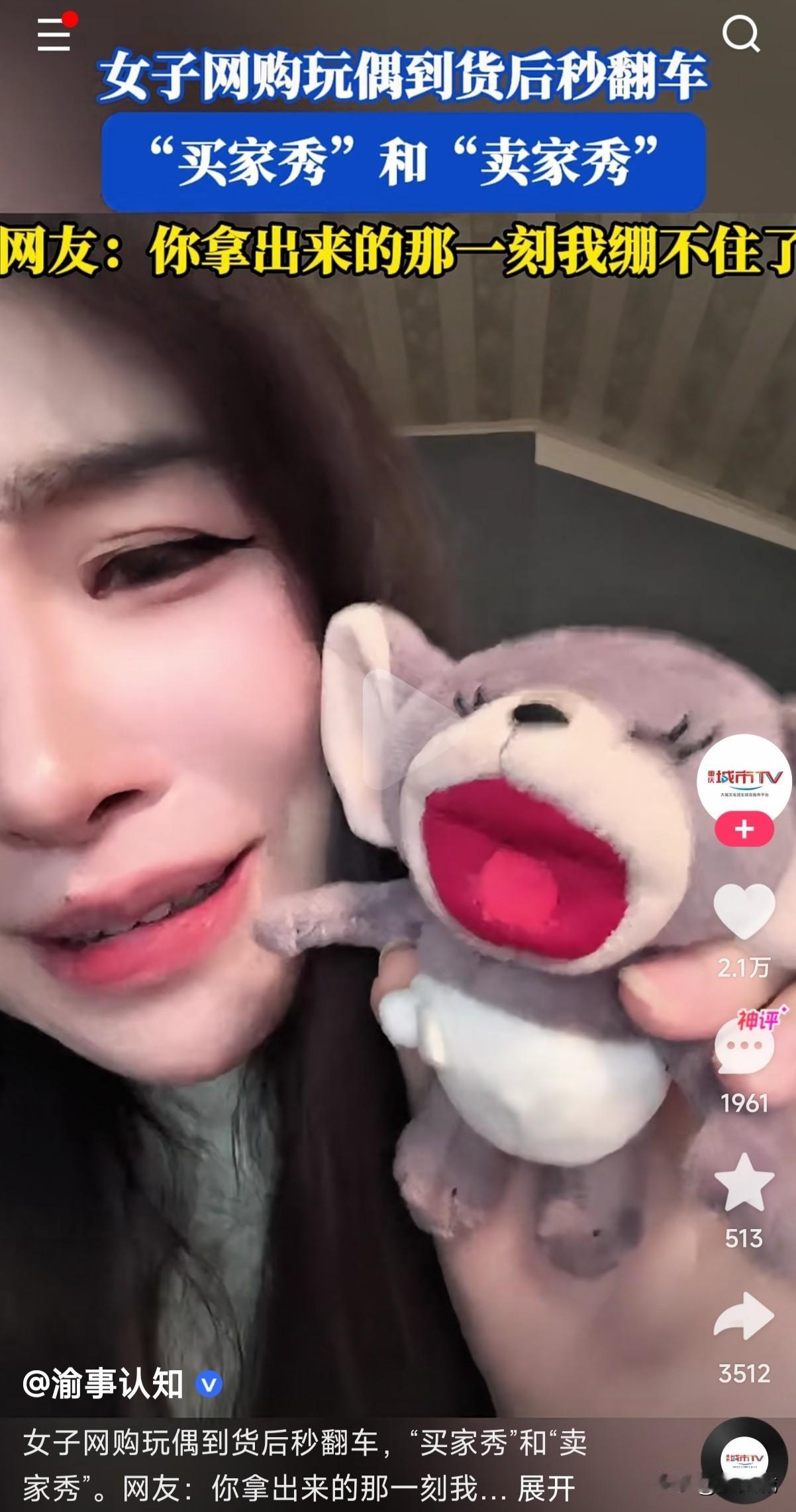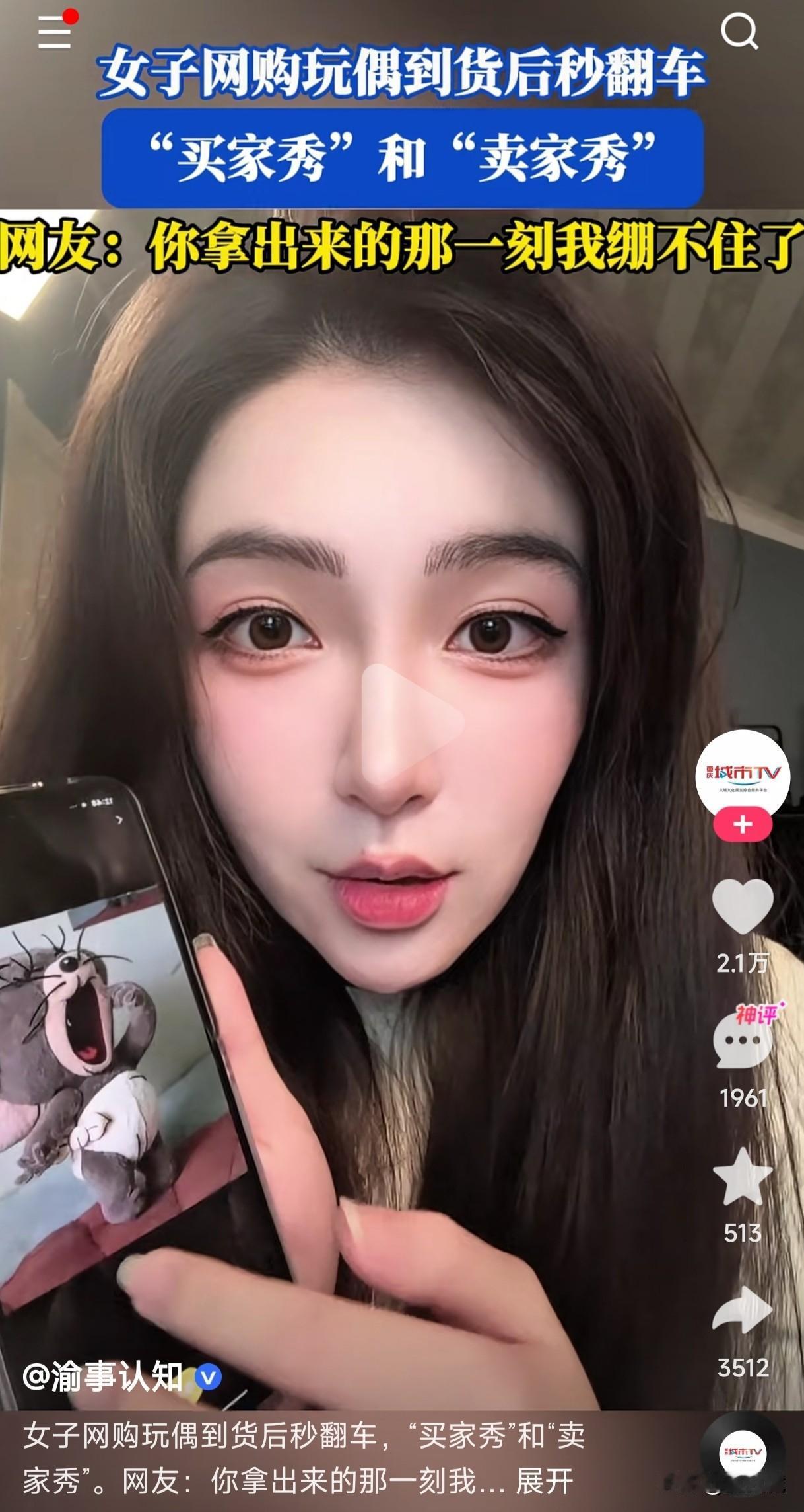 女子网购玩偶到货后秒翻车 买家秀和卖家秀果然天差地别 卖家还是懂买家的心思的 虽然说东西相差太大 最起码卖家还给它涂了口红 知道女孩子漂亮爱美 还特意给打扮了一番 不过这样也蛮可爱 不是和女子的口红一个色吗