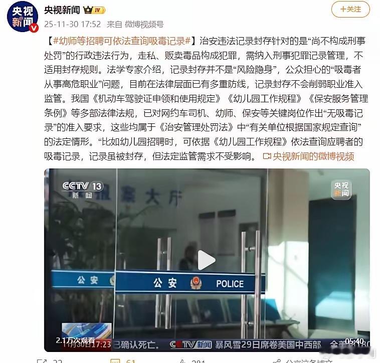 幼师等招聘可依法查询吸毒记录幼师招聘时可依法查询吸毒记录,有涉毒史直接一票否决。这波操作真是戳中家长的心巴,终于给孩子的校园安全多添了层硬保障。其实不仅仅是幼师,建议将查询范围扩大到整个教师,小学、初中、高中、大学老师可能是有吸毒史的,涉毒人员,不仅自身状态不稳定,还可能给孩子带来难以预估的风险。一旦混入教师队伍,后果不堪设想,家长根本不敢想也不能接受。热点观点