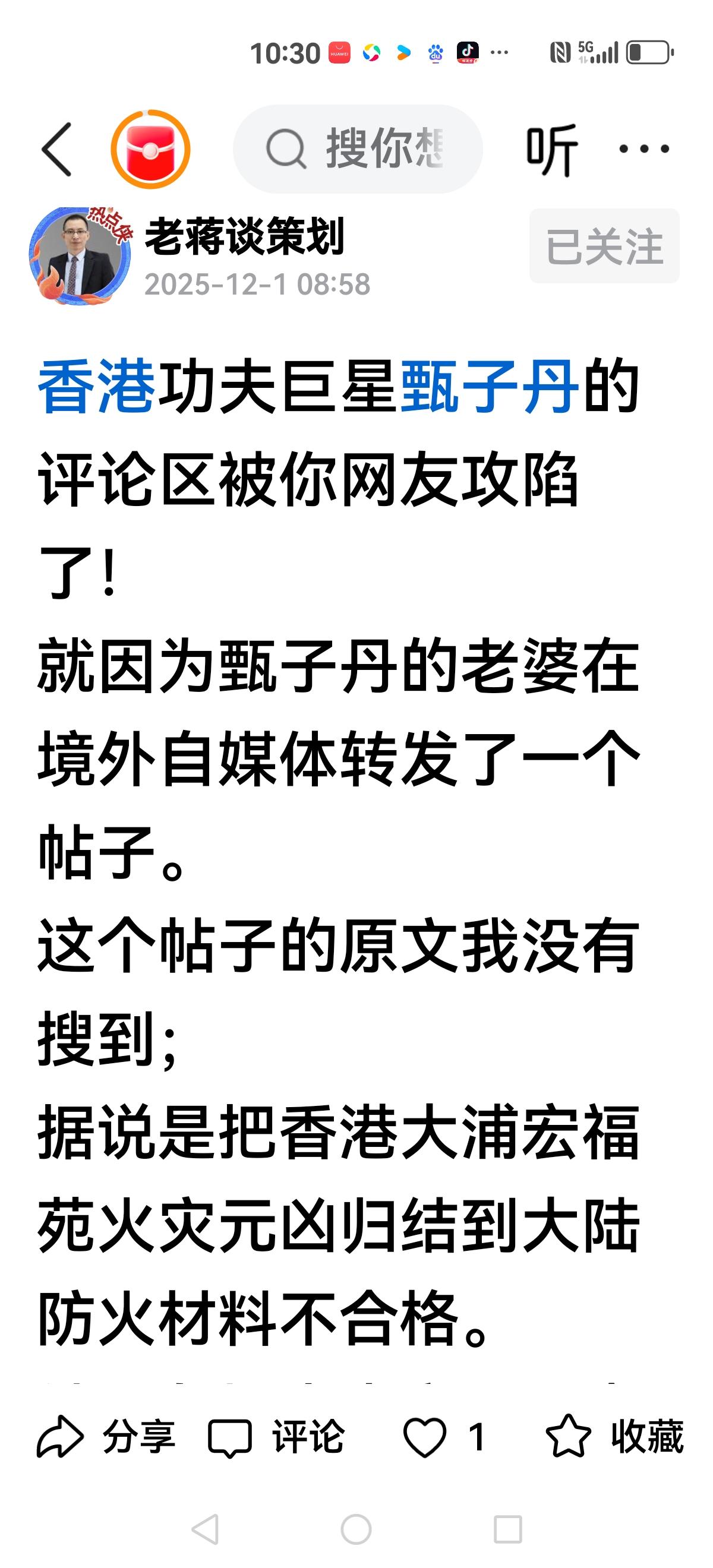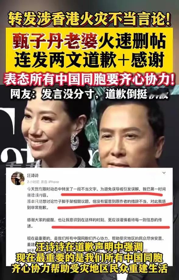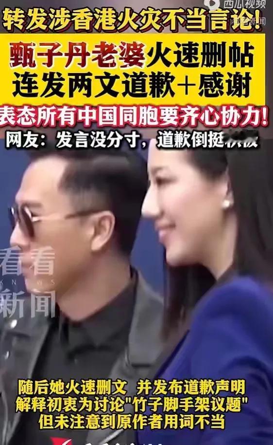 【不是法外之地】 功夫巨星的妻子发表不当言论,删帖后道歉。