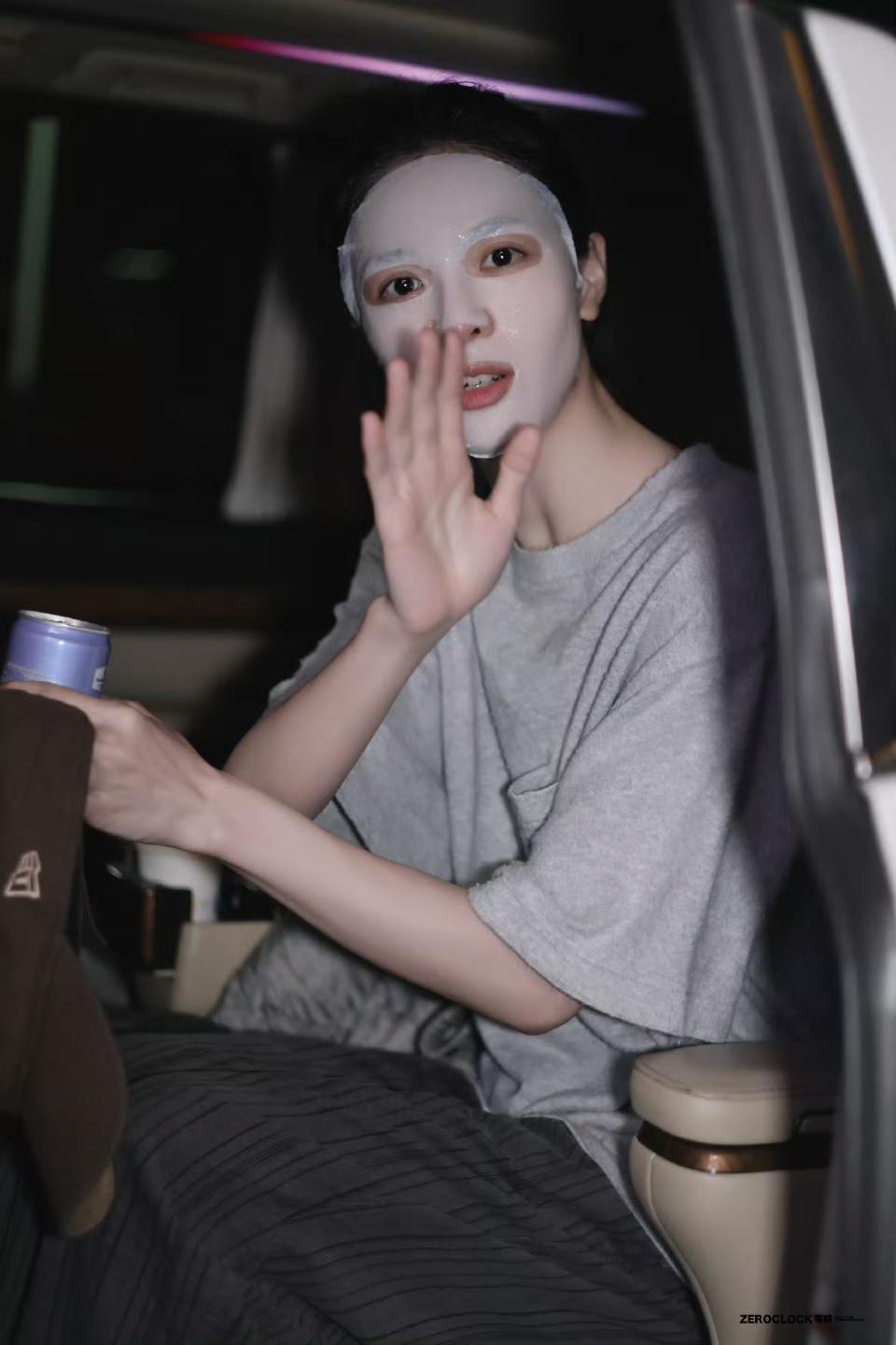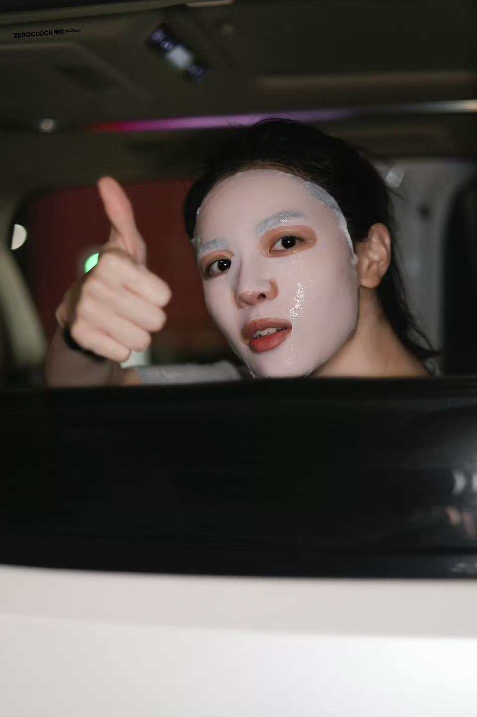 钟楚曦半夜拍戏,敷面膜下班,辛苦了!