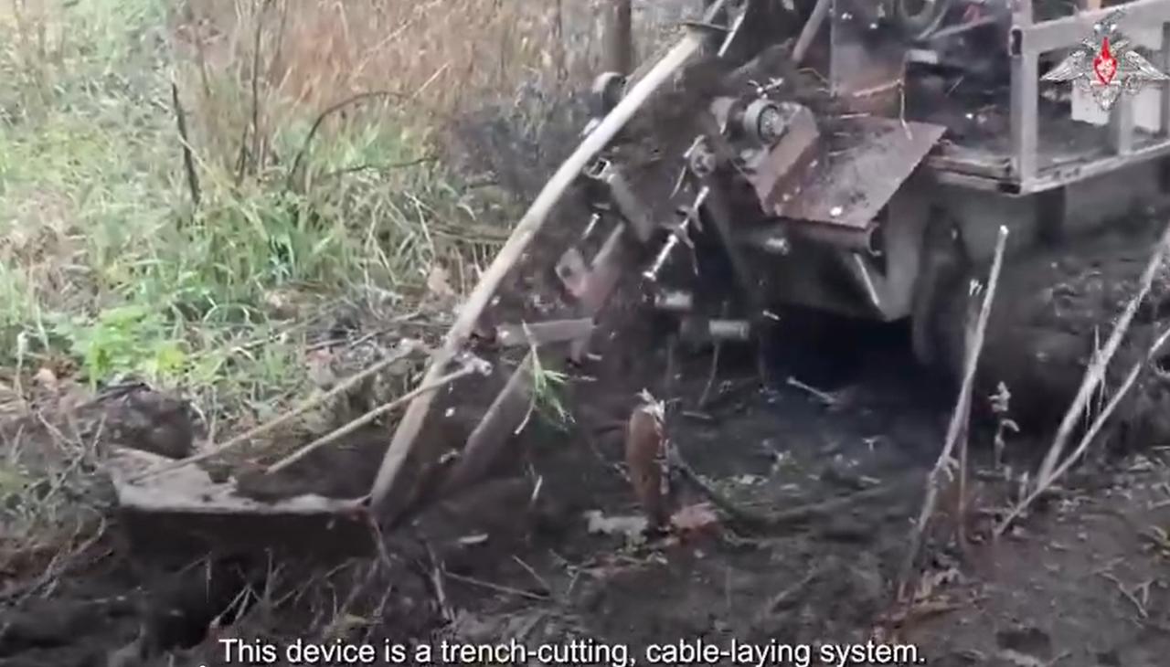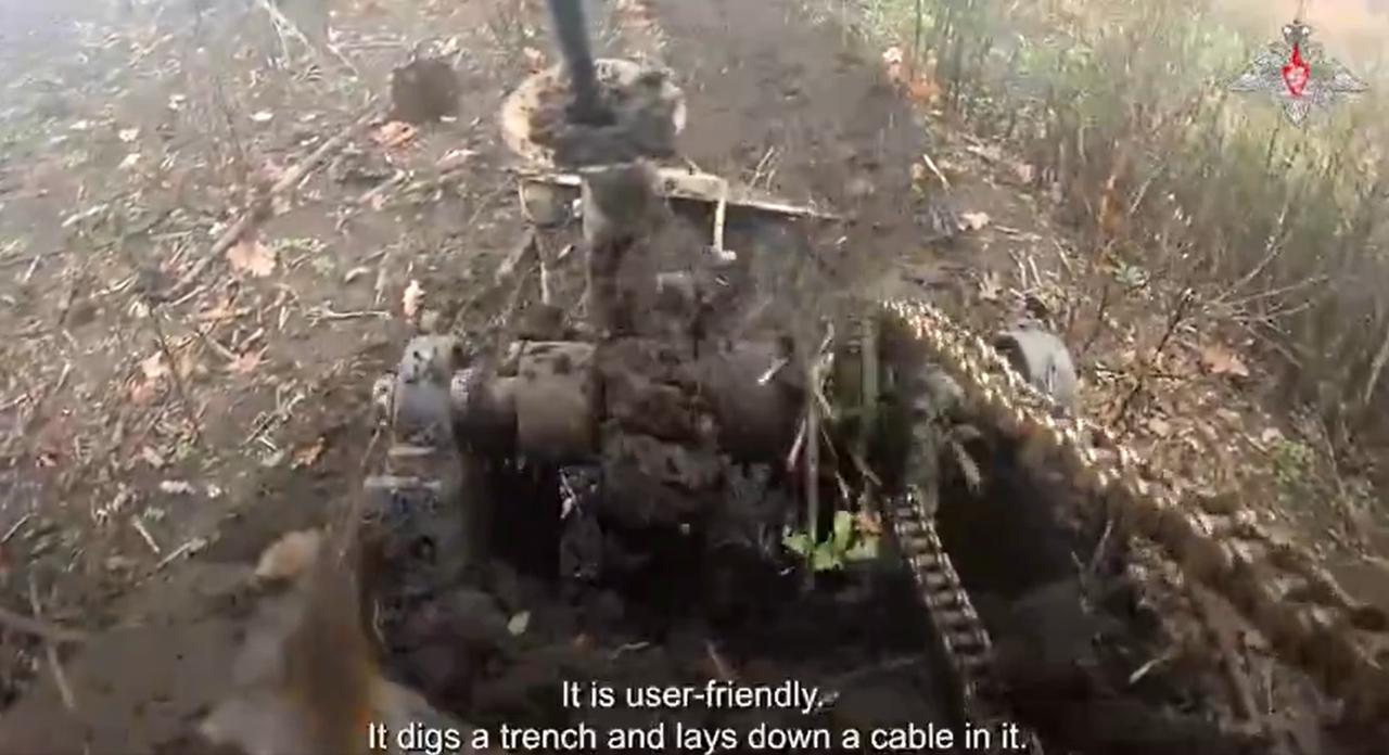 无人系统部队(东方集团军)的官兵使用地面机器人系统在扎波罗热州的指挥所之间铺设通信线路。 该机器人负责挖掘土壤并将电缆铺设到所需深度。无人机由远程控制,因此官兵在接触线附近操作时无需冒生命危险。