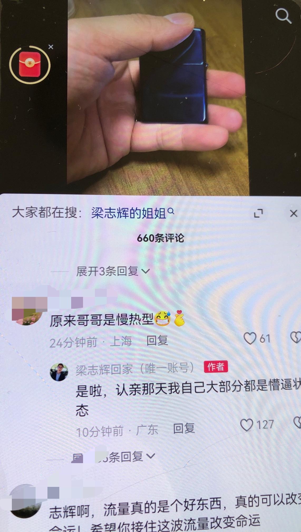 梁志辉的工作有点闲,确实不是汽修工,也不是卖海鲜的,是坐办公室的。不仅有时间和网友互动,还一个小时内连发两条动态,比他爸爸更新的速度快了几十倍呀。 梁志辉:认亲那天自己大多数时间都是处于懵逼的状态,本身性格就有一点慢热。看来还是弟弟懂他,给他送了打火机,直接送到他心坎上去了。 弟弟也说了,两个姐姐对他最多的是呵护,兄弟情给他的感受是依靠。不愧是学霸,言谈举止找不出一点漏洞。 梁志辉很有做自媒体的天赋,他的视频都很简单明了,就像更新朋友圈一样随意。而现在的平台推荐机制,这类的视频流量都非常好。