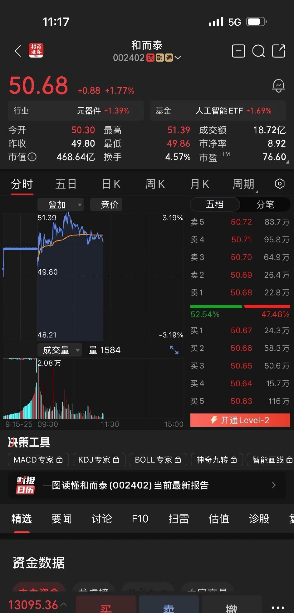 摩尔要上了…目前看和而泰没有新庄接手。 主力不给力,拉不起来,迟早要换别的庄家接盘,不会下跌太多,横盘还会起飞。