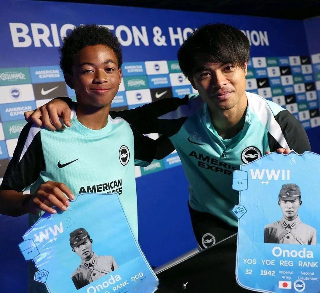 英超日本国脚手持日军军官卡片合影据英国广播公司报道,英超布莱顿俱乐部当天就其社交媒体上一张引发争议的图片道歉,图中,日本国脚三笘薰与一名小球员各自手持一张印有二战时日本军官小野田宽郎头像的卡片。所以华夏子孙不要再对倭寇抱任何幻想了,也别说什么体育无关政治了,在他们这种兽群的基因里,战争就是生存,掠夺就是强势占有。国内不还有很多这个瘪三的拥趸吗?看看宠爱追求的所谓“猩猩”再对你这个国度的伤害吧。醒醒吧,年轻一代的未来