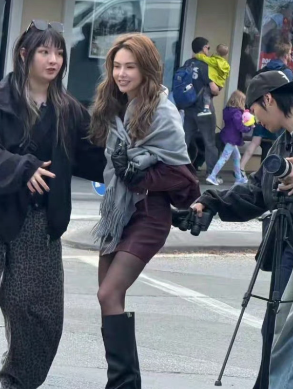 周杰伦的老婆昆凌现身新西兰街头,穿着黑丝袜长筒靴,卷发挺洋气