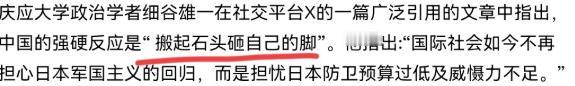 态度很嚣张!11月30日,日本庆应大学政治学者细谷雄一在社交平台刊文声称,中国的强硬反应是搬起石头砸自己的脚。此人声称,国际社会如今不再担心日本军国主义的回归,而是担忧日本防卫预算过低及威慑力不足。 2025年11月30日,日本庆应大学政治学者细谷雄一在社交平台发文,一番言论满是扭曲事实的荒谬,看得人实在忍不住想戳破他的不实说辞。 更离谱的是,他还宣称国际社会不再担心日本军国主义回归,反倒忧心日本防卫预算太低、威慑力不足,这简直是颠倒黑白,无视国际社会的普遍担忧。 稍有常识的人都清楚,日本近些年不断突破防卫限制,大幅增加防卫相关支出,种种举动早已引发周边国家和国际社会警惕,哪来的“威慑力不足”之说。 细谷雄一这番言论,说白了就是站在极右翼立场上混淆视听,故意淡化日本军国主义复苏的风险,还想抹黑中国的正当反应,用心实在险恶。 有人直言,要是日本真敢继续滑向军国主义的邪路,根本不是中国自食其果,而是日本会迎来最彻底的二次清算,这话戳中了关键,也道出了大众的心声。 那些日本极右翼分子总觉得现在日本比中国有优势,抱着这种想法的人,说白了就是活在梦里没醒,完全看不清当下的实际情况,实在可笑又可悲。 大家不妨细算一番,近年来中国发展斐然,有目共睹。无论是综合实力,亦或是国际影响力,皆稳步上扬。而日本曾自诩的“优势”,早已成为明日黄花。 再看看日本的处境,经济长期低迷不说,还得依赖外部势力,想靠强化军事力量找存在感,殊不知这种做法只会让自己陷入更被动的局面。 细谷雄一作为大学学者,本该秉持客观理性的态度看待问题,却发表如此偏颇的言论,实在有失学者的严谨,更像是在为极右翼势力摇旗呐喊。 国际社会一直对日本军国主义复苏保持高度警惕,毕竟历史教训太过深刻,谁也不想看到曾经的悲剧重演,细谷雄一刻意忽视这一点,实在令人不齿。 中国向来秉持和平发展理念,所有反应都是基于自身主权和利益不受侵犯,从来不会主动挑起矛盾,所谓“强硬”不过是正当维权,何错之有。 那些觉得日本有优势的极右翼分子,不妨看看现实,中国的发展速度和综合实力摆在那,真要比起来,日本根本没资格谈“优势”,纯属自欺欺人。 细谷雄一的言论,本质上就是想误导舆论,让国际社会忽视日本的危险动向,同时抹黑中国的形象,这种小伎俩根本瞒不过明眼人。 历史早就告诉我们,军国主义是条死路,日本要是真敢往这条路上走,只会遭到全世界爱好和平力量的反对,最终的结局必然是自食恶果。 中国从不惹事,但也绝不怕事,要是有人敢触碰中国的底线,中国必然会做出坚决反应,这不是“强硬”,而是捍卫自身权益的必然选择。 日本要是真为自己的未来着想,就该正视历史,放弃军国主义幻想,与周边国家和平相处,而不是听任极右翼分子鼓噪,走上错误的道路。 细谷雄一的这番谬论,不仅得不到国际社会的认可,还会让更多人看清日本极右翼势力的真实面目,反而不利于日本的国际形象。 所谓“中国搬起石头砸自己的脚”,完全是无中生有,中国的每一步发展都走得踏实稳健,维护自身利益的举动只会让国家更加强大,何来“自伤”。 日本要是继续执迷不悟,任由军国主义抬头,只会失去更多国家的信任,最终被国际社会孤立,这样的后果,可不是日本能承受得起的。 那些活在过去优势梦里的极右翼分子,该醒醒了,时代早就变了,和平发展才是主流,抱着过时的想法不放,只会让人笑话,更会害了自己的国家。 中国始终坚持走和平发展道路,也希望周边国家都能秉持和平理念,共同维护地区稳定,可要是有人非要逆势而为,中国也绝不姑息。 细谷雄一的言论不过是跳梁小丑般的叫嚣,改变不了任何事实,反而会让大家更清楚地认识到,日本极右翼势力的存在,才是地区稳定的最大隐患。 和平来之不易,历史教训必须铭记,任何想挑战和平底线、复活军国主义的行为,都会遭到严厉谴责和坚决反对,这是不容置疑的。 国家之间相处,讲究的是相互尊重、平等相待,日本要是真懂这个道理,就该收起那些不切实际的幻想,用诚意与周边国家打交道,这才是明智之举。