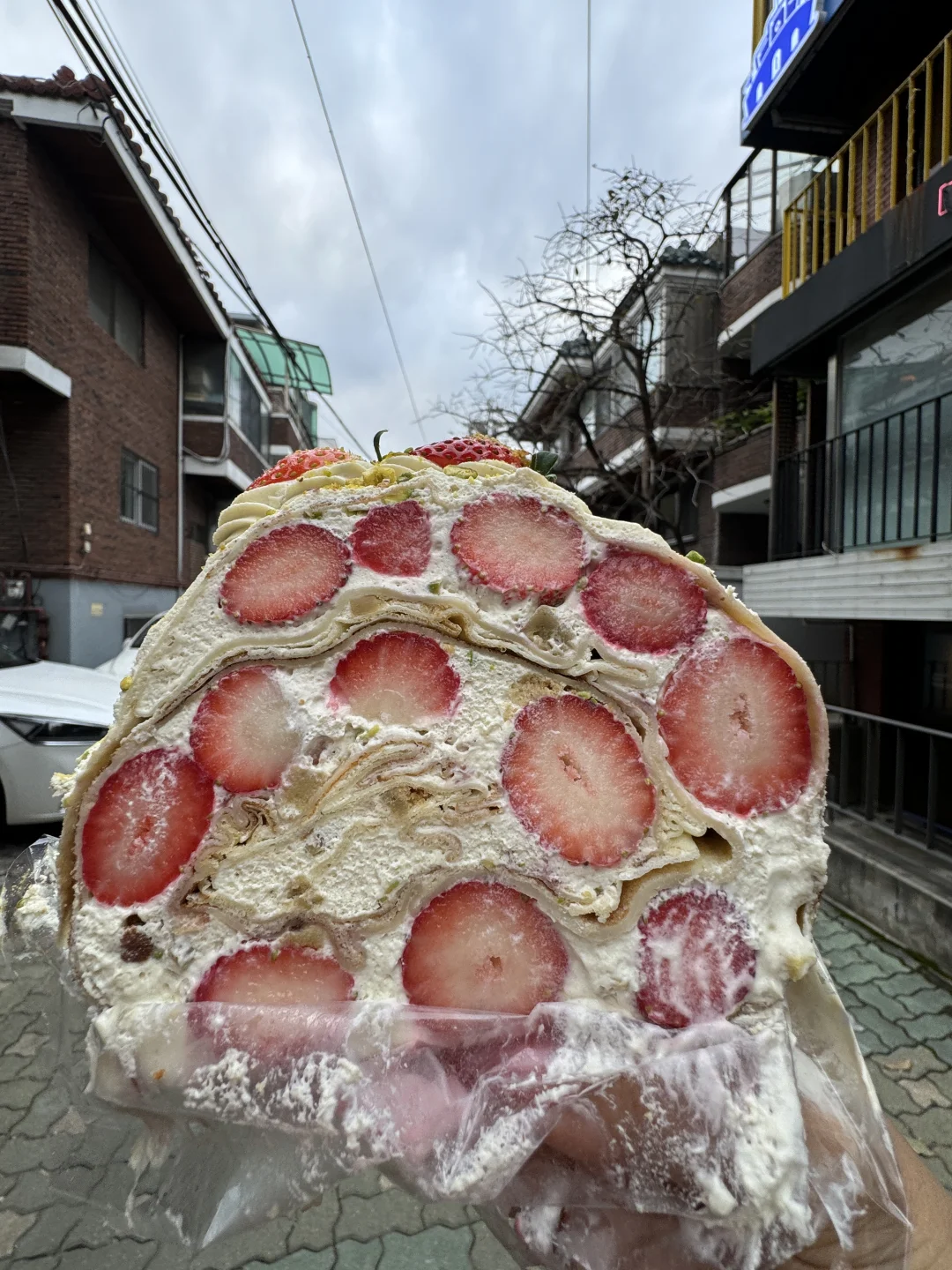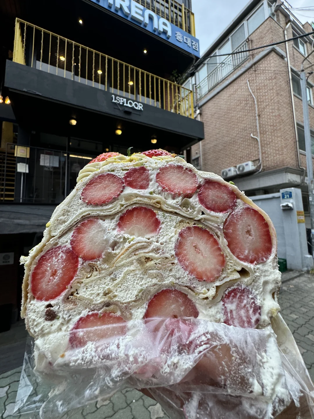 好好吃的草莓蛋糕卷🍓!!! 千层的口感!奶油很绵密,一点也不甜腻~