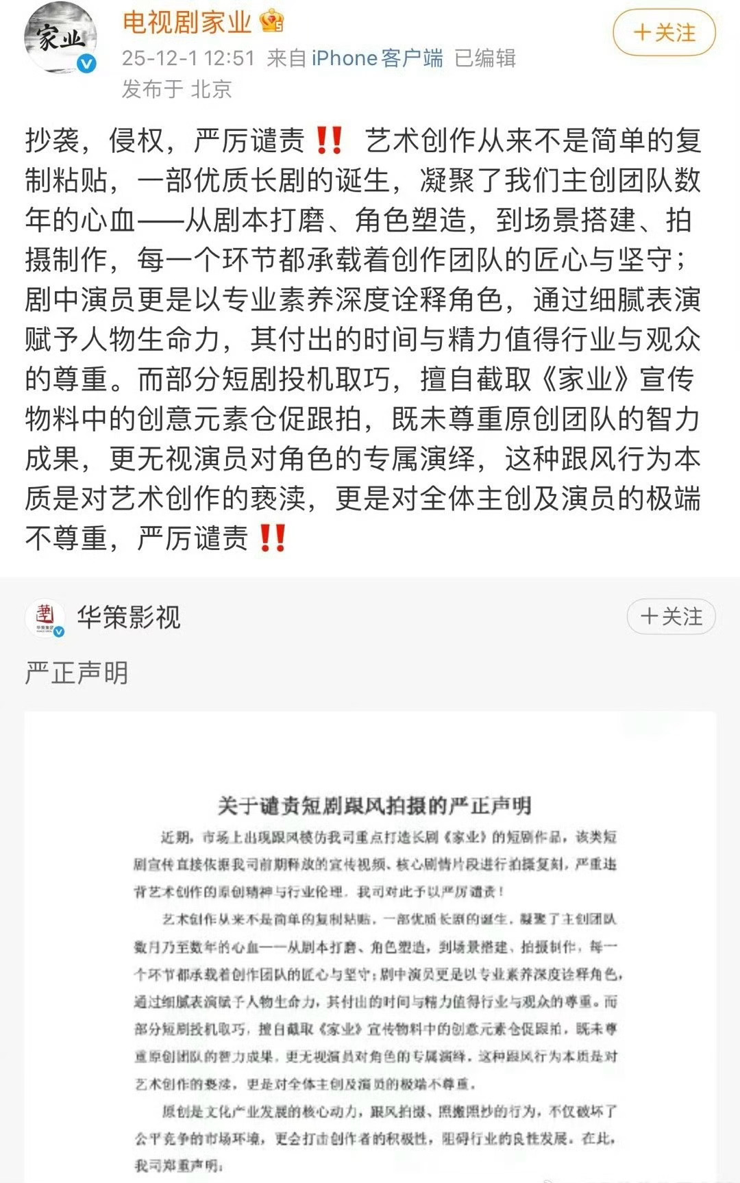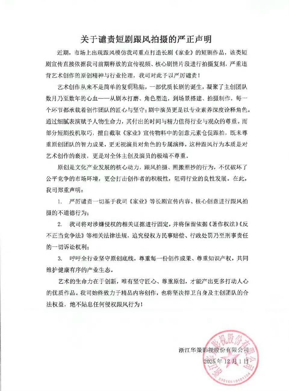 有短剧拍《家业》?长剧由杨紫主演!家业剧组维权 华策影视严正声明