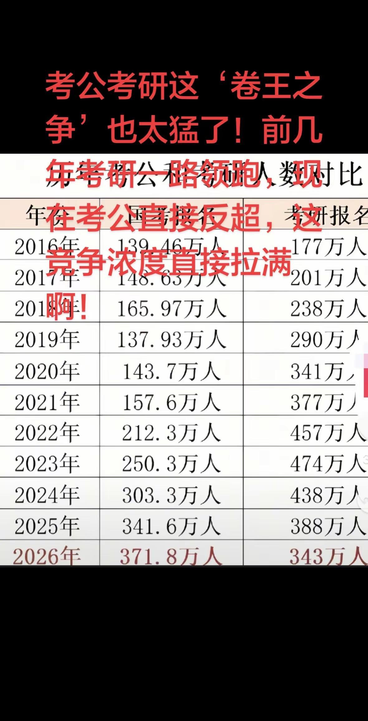 考公考研这‘卷王之争’也太猛了!前几年考研一路领跑,现在考公直接反超,这竞争浓度直接拉满啊!