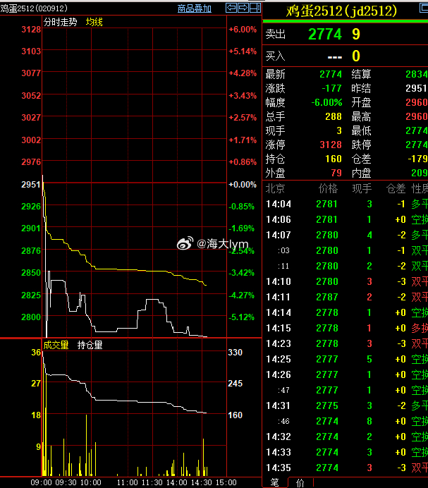 进入交割月的鸡蛋2512合约跌停鸡蛋期货今天河北馆陶粉蛋现货价格2.71鸡蛋