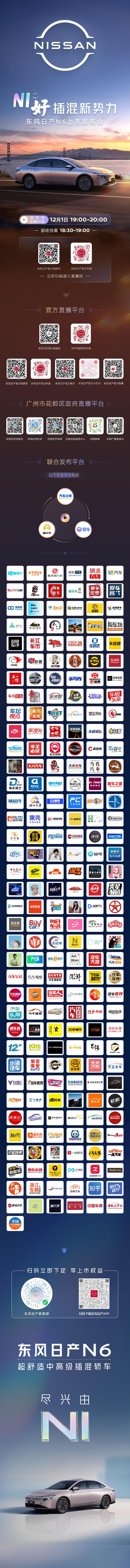 东风日产N6上市定档插混新势力东风日产N6将于12月1日19:00 正式上市!东风日产直播间邀NI共同解锁史上最舒适的发布会!史上最舒适的发布会东风日产N6东风日产