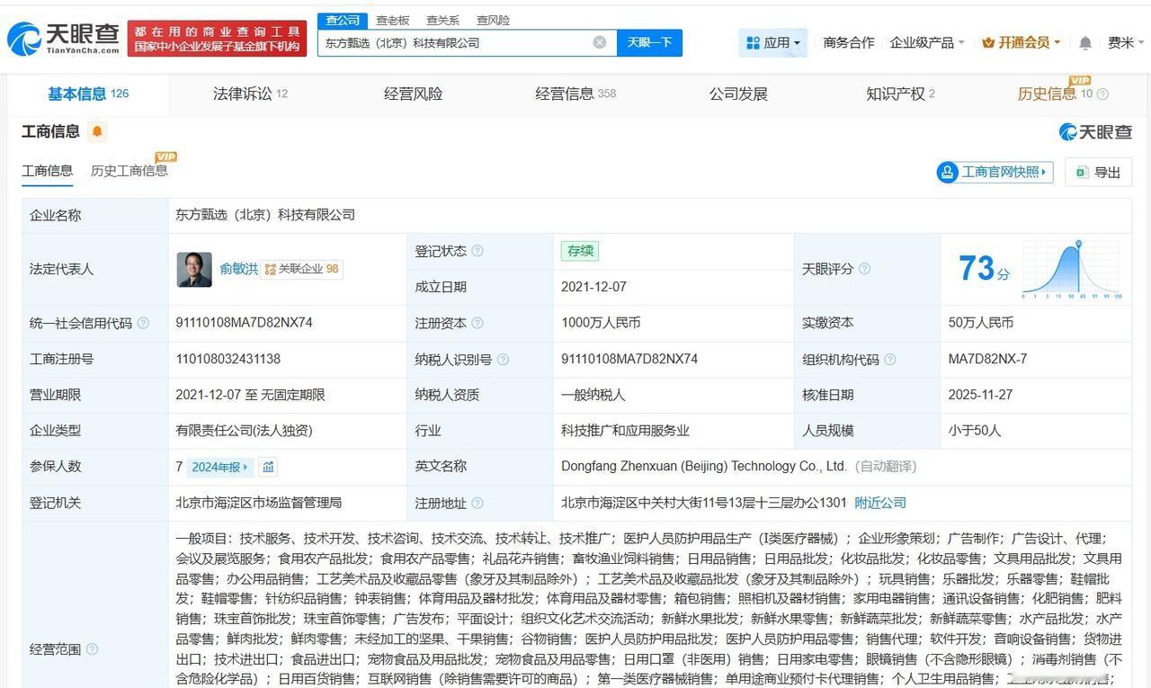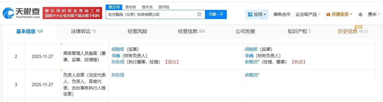 俞敏洪任东方甄选法定代表人 孙东旭卸任东方甄选职务孙东旭卸任东方甄选执行董事