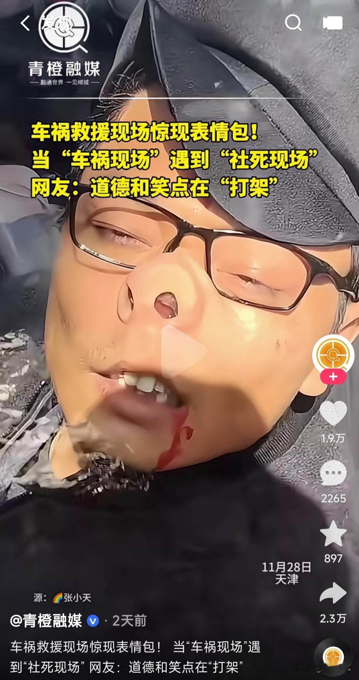首先说声对不起,请原谅我不厚道的笑了。 第一次见车祸救援现场受伤人员惊现的表情包,这是车祸现场和社死现场偶遇了吗?这让救援人员是抓紧时间救他呢还是笑玩在救? 这可能是有史以来最搞笑的车祸现场了,在现场的人不知道是如何憋住不笑的,这所谓是真正的道德和笑点在打架,其实谁看到了都憋不住想笑,可是对于他来说可能鼻子真的很疼。 不笑他吧,可是真的憋不住,因为这实在是太搞笑了,笑他吧这是不是有点不道德?如此惊心动魄的车祸现场,人家受伤了疼的不行,边上的人还在笑,这搁谁心里能舒服,除非救援的人和受伤的人一起笑这不就没事了吗?边笑边救他不是一举两得吗?