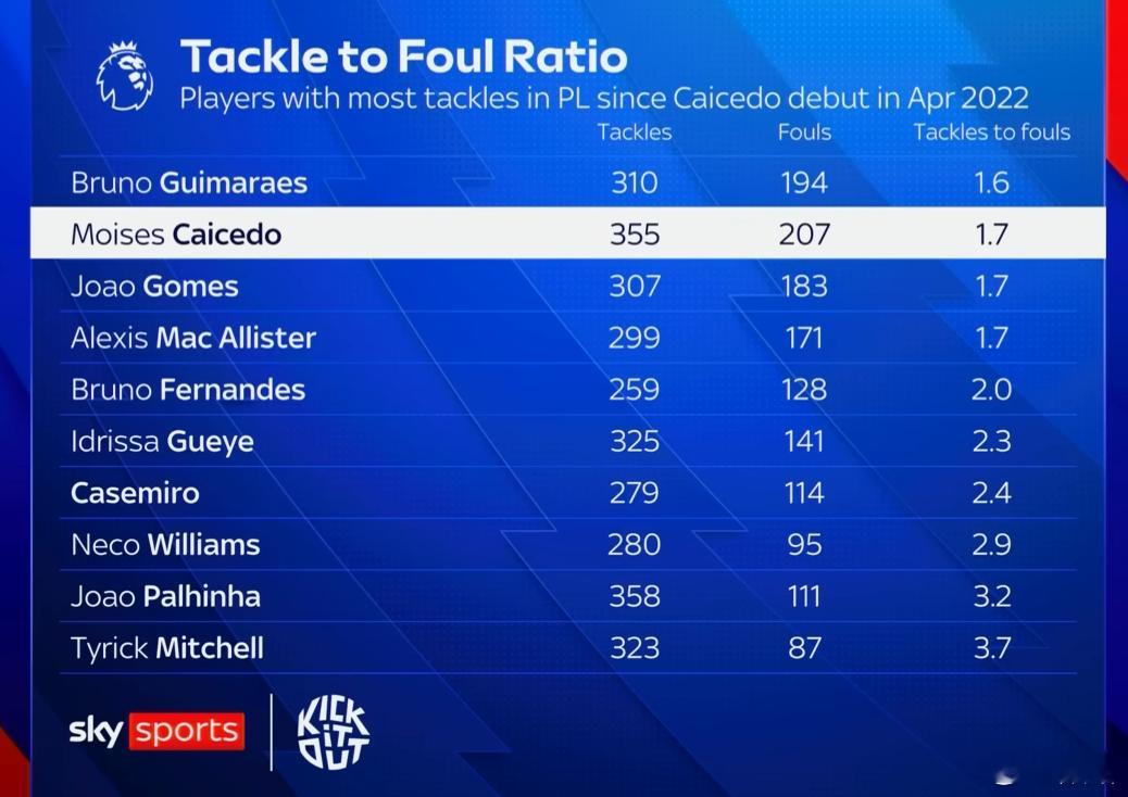 切尔西1比1阿森纳 天空体育台总结了凯塞多加盟切尔西之后的铲球和犯规数据,他仅仅排在纽卡斯尔的狠人吉马良斯后面,是铲球导致犯规较多的一个。也就是说,像水晶宫的米切尔铲球也很多,但很干净,大多数时候不犯规。而凯塞多基本上就是每2次铲球就有1次是犯规,说明动作不干净。如果这方面不改进的话,未来他还要吃亏。值得一提的是,凯塞多世预赛吃了红牌,带到世界杯,小组赛前2场停赛。昨晚那张红牌,说明凯塞多容易上头。在中场区域,自己的后卫整条后防线都站稳了,梅里诺背对着切尔西大门,这种情况下为啥要踹出去呢?切尔西