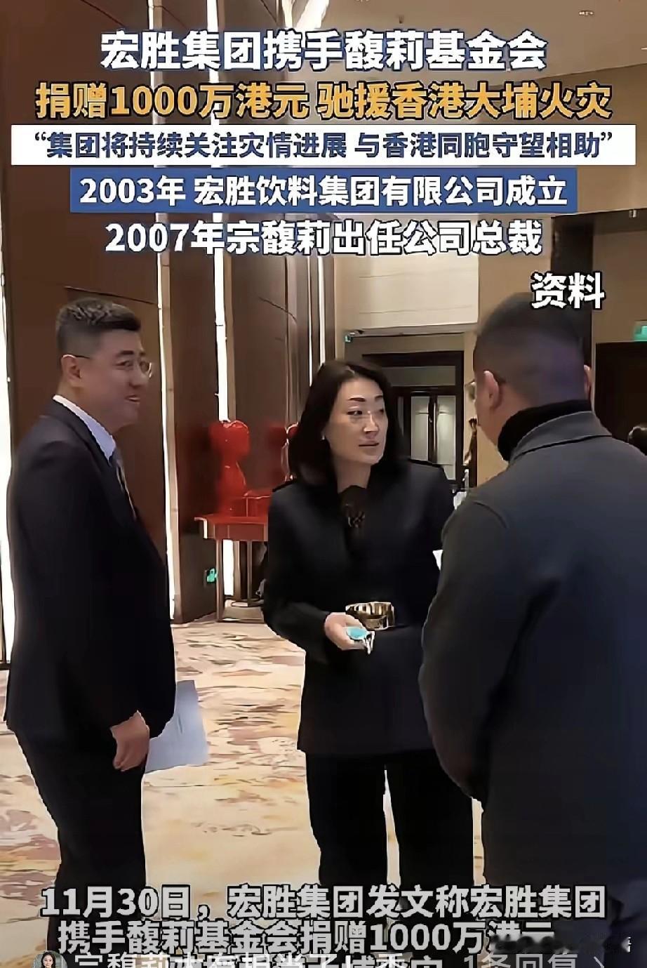 长公主捐款1000万港元。为香港灾民献爱心。 宏盛集团与香港灾民,将守望相助,持续关注灾情进展。 宗馥莉有担当,并不是她叔叔口里的面黑心狠之人。 不知她叔叔看到这一幕又有何言? 有血缘亲情的人,伤了她的心,并不代表她的心就变冷了,她的血依然是热的。 这就是有的人,为啥认可把所有财产捐给社会,也不留给所谓亲人的原因。 是那些人伤了她的心。并不是她心有多狠。