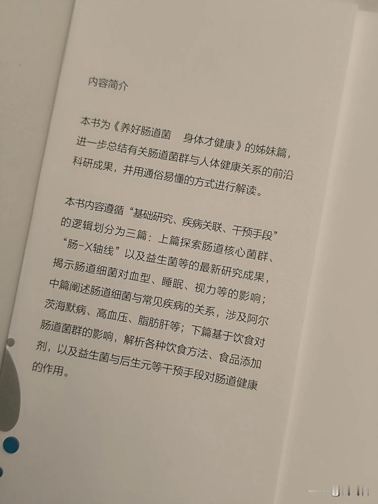 养肠等于养命?远离炎症、慢病从养肠道入手 在姚纪高编著的《揭秘肠道菌,提高免疫力》一书中说:“肠道照顾好,健康没烦恼。” 他以76岁高龄用自己的切身体验,呼吁更多人关注肠道的健康,所以他写了这本书。 书中共分为三个核心部分,从肠道菌群的基础知识入手,逐步深入到肠道菌与健康的紧密关联,并给出切实可行的各种饮食方法,来干预肠道健康。 第一部分围绕肠道核心菌群及益生菌的相关知识展开,我们可以从中了解一些研究成果,里面内容通俗易懂。 第二部分聚焦肠道细菌与常见病的关系,肠道不健康对我们产生的危害多多。 比如影响大脑的疾病:老年痴呆、抑郁、孤独症、精神疾病等;以及老年慢病:高血压、脂肪肝、骨质疏松等十多种常见病,都和肠道健康有关系,可见肠道健康的重要性。 书中也指出:“肠道首先不会直接影响大脑,而是当失衡的肠道菌群会产生有害物质,从而通过血液而影响大脑功能。” 所以我们要保持身体健康,还是从肠道健康开始,书中也说:“像老年痴呆这类病其实目前无药可治,但要让他缓解,修复大脑最好的办法就是修复肠道。” 第三部分则从饮食角度出发,指导我们通过合理饮食调节肠道菌群,为维护肠道健康提供了指导性的饮食方向。 作者建议不宜吃过量的糖,而应多吃膳食纤维可预防炎症。 不宜吃过多的加工食品,虽然好吃又方便,但这些会提高炎症等风险疾病,作者也建议我们尽量不吃或少吃含有二氧化钛的“食品添加剂“,虽然这类添加剂是合法的,但会影响我们的健康。 不宜多吃高油、高盐、高脂肪的食物。 我们可以多吃含有EPA和DHA的深海鱼油,抗氧化的褪黑素、水飞蓟素、染料木素等的食物,让肠道菌群平衡,保卫肠道健康。 在健康养生观念日益普及的今天,这本书为我们提供了一份宝贵的 “肠道健康指南”,引导我们从关注肠道菌群开始,主动呵护自身健康,为免疫力筑起一道坚固的防线。