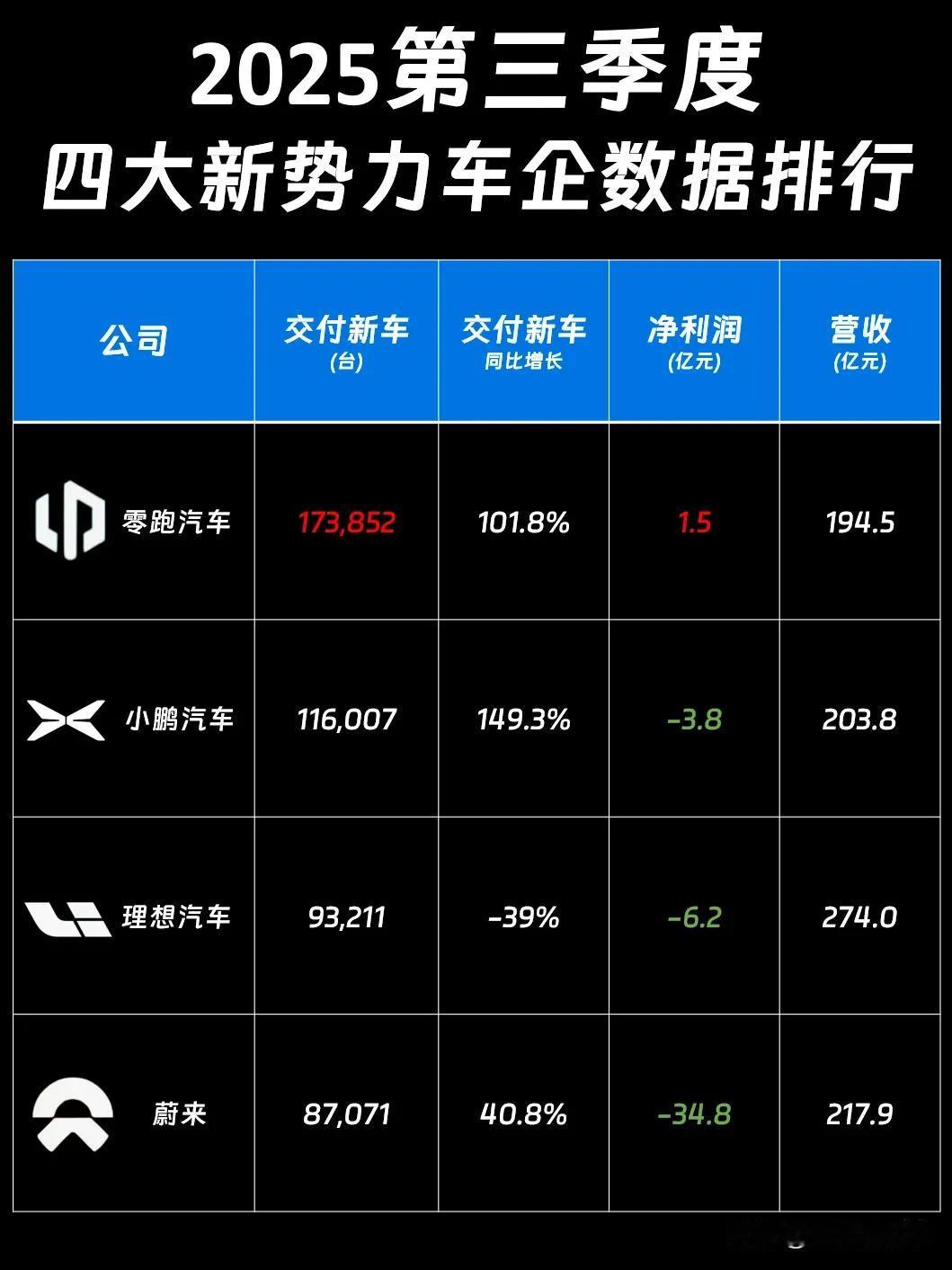 11月交付再破“7”,海外市场也同步创新高,零跑的巅峰会在哪儿? 当所有人以为零跑的10月70289台交付量已经是巅峰的时候,零跑在11月又交出了70327台交付的成绩,再度破“7”,让人对零跑的实力也再次产生怀疑,不过怀疑的是零跑的巅峰究竟在哪儿? 今年从3月开始,零跑交付量就一路飞涨,不仅一路涨到了7万+的水平,也实现了新势力月销九连冠,小鹏、小米、理想等新势力品牌始终难以追上零跑的增长节奏,零跑俨然已经在新势力阵营中独开一档,断崖领先。所以零跑的财报也尤为亮眼,在三季度成为蔚小理零四家新势力中唯一盈利的品牌。此外,零跑又在11月中实现了提前达成全年50万台销量目标,截止11月底今年交付已破53万台,已经直奔全年60万台的里程碑而去。 而在零跑的热销过程中,海外销量的贡献也不可忽视,零跑在短短一年多时间内,已经在海外建立了800多家渠道门店,并且取得了今年1-10月累计出口超4.4万台的成绩,并且在11月也再度取得突破,出口量达9348台,订单量突破1.5万台,领先其他一众新势力品牌。 值得关注的是,零跑Lafa5这款新车已经在前两天正式上市。那么在国内、国外销量持续爆发,新车上市的情况下,零跑12月份的交付量恐怕会再次刷新纪录。巧合的是,12月份零跑也将迎来品牌成立10周年,相信如今这份成绩单足以为零跑的第一个十年画上圆满句号。