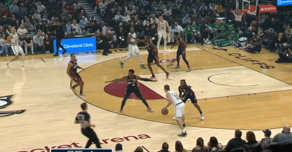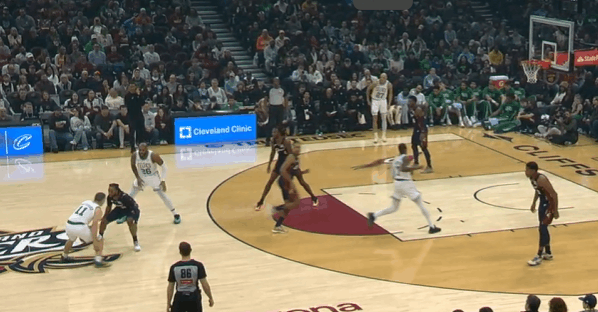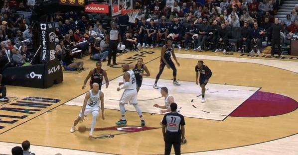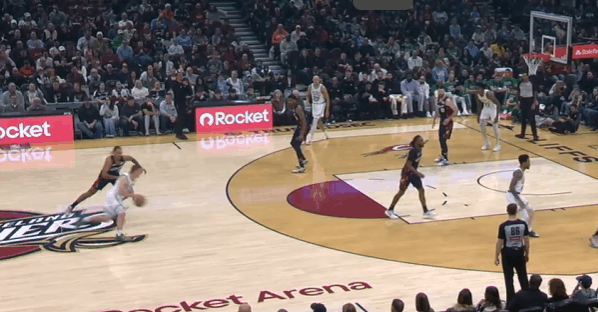 普理查德技术欣赏:对阵骑士爆砍42分,打出赛季最佳一战“车库战神”普理查德在今天对阵骑士的比赛打出了赛季最佳一战——22投15中,爆砍42分3助攻3篮板。单场投篮命中数平生涯最高,距离追平自己的生涯最高分只有1分之差。图1比赛刚开场,普理查德便抓骑士找初始对位人阶段获得投篮空间,接布朗传球三分线外两步远拔起就射。图2持球过半场后观察防守阵型,等布朗落位弧顶牵制米切尔后边路单打加兰:佯装变向走右路突破,实则“in&out”拉回,调动加兰防守重心,再衔接连续两次胯下,连续攻击加兰的前侧脚,随后迅速左手起球合球衔接后撤步三分,稳稳命中。图3持球操刀“西班牙挡拆”(Stack),见加兰采取“提前挤过”防守站位后佯装胯下走右路突破“拒绝掩护”,实则再变向变到左路借助蒂尔曼扎实的掩护挂住加兰,左手合球后“一二步”找到节奏直接出手持球三分,惩罚莫布里的高位沉退。图4布朗和西蒙斯右侧的“Pin Down”配合牵制防守注意力,普理查德持球突破直杀篮下,行进间主动沉肩对抗、支臂进一步保持身位优势后迅速衔接横撤步,没有急着出手而是先虚晃调度泰森防守重心后再出手后仰跳投。图5持球推进,波特采取“堵强势手侧”的防守站位,逼迫普理查德走左手侧并将其往边线驱赶,普理查德“将计就计”变向走左路突破,一路扛着波特“碾”到篮下后,篮下小停顿、节奏变化直接点飞波特,随后上空篮得手。图6推过半场后立即抓“早期进攻”与蒂尔曼衔接手递手进攻,行进间走Z字形将泰森卡在身后之后变向换到右手(惯用手)的同时左手卡住泰森保持“身位优势”,随后迅速衔接背转身与此同时丝滑将球变到左手,炸球撤步中投稳稳命中。图7沃尔什抢到前板后交给三分线外的普理查德,进攻时间仅剩3.4秒莫布里、泰森都以为普理查德要出手三分双双被点飞,普理查德虚晃后交叉步启动左路突破,途中再使用“欧洲步”躲过制造进攻犯规的加兰,起跳后空中转身小抛投打进。图8佯装发动“Double Drag“见波特采取“堵强势手侧”的防守站位,逼迫普理查德走左手侧并将其往边线驱赶,直接“拒绝掩护”变向启动左路突破,突破途中连续三次对抗攻击防守人重心、保持身位优势,最后一次幅度最大的支肘对抗撞开波特后立即衔接右手反篮终结。图9变向之后身体、眼神朝向右斜前方,见加兰的防守位置向自身右侧移动后迅速“Corssover”启动左路突破过掉加兰,随即出手急停中投稳稳命中。图10见加兰防守站位处于自己左前侧后立即变向启动右路突破,行进间急停沉肩对抗直接撞开加兰获得投篮空间后立即出手急停中投,迎着莫布里扑防稳稳命中。普理查德42分凯尔特人战胜骑士