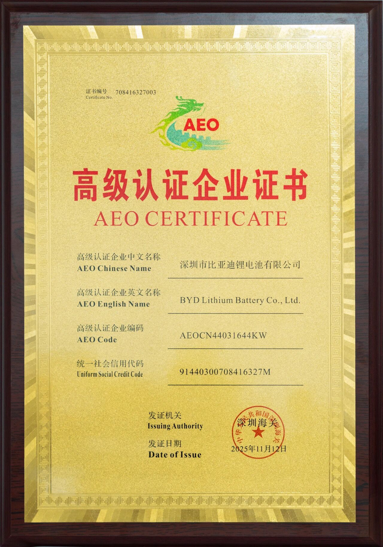 近日,深圳海关举行2025年AEO集团认证企业颁牌仪式,深圳海关副关长、党委委员潘楚雄亲自为深圳市比亚迪锂电池有限公司、比亚迪股份有限公司、惠州比亚迪电子有限公司、三家法人公司授予海关AEO高级认证企业证书。比亚迪是深圳关区唯一获三大隶属海关联合认证的集团企业。AEO认证作为海关对信用良好、守法合规及安全管理达标企业进行的权威认定,是中国目前唯一由政府实施的信用认证,是海关对企业信用管理、合规体系、贸易安全的360度“CT扫描”,更是对企业合规管理能力的长期考验。作为国际贸易的“绿色通行证”,获得AEO认证企业可以享受中国及其AEO互认的57个国家(地区)海关的诸多通关便利措施。这不仅有效提高比亚迪电池出海产品的通关效率、缩短交货周期、提升全球供应链效率,更有助于增强其海外市场竞争力。截至2025年11月底,与比亚迪电池相关联的深圳市比亚迪锂电池有限公司及其坑梓分公司均获得所在国家(地区)海关的AEO认证。AEO认证是国际贸易高质量发展的必然选择,更是中国企业与世界共赢的底气。比亚迪电池将依托这一“绿色通行证”,为其海外业务拓展注入新动能。厂长说电池