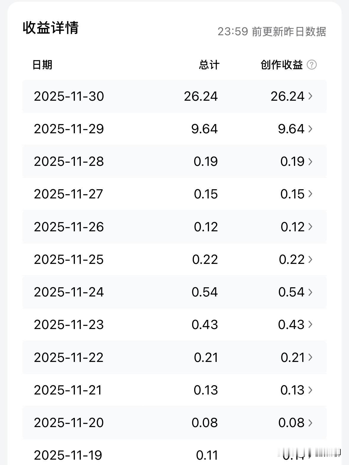 不容易,终于见到10块以上的收益了! 昨天和今天,每次打开头条都是99+的未读消息,每个点赞和评论都一一用心的回复,可把我累的不轻。粉丝也涨了不少,爱你们哦! 辛劳的付出还是有回报的,一个多月了终于见到10块以上的收益了。 嘻嘻,太高兴了,一会回家必须奖励自己一杯奶茶喝喝。 果然付出还是有回报的,大家也要一起加油呀!